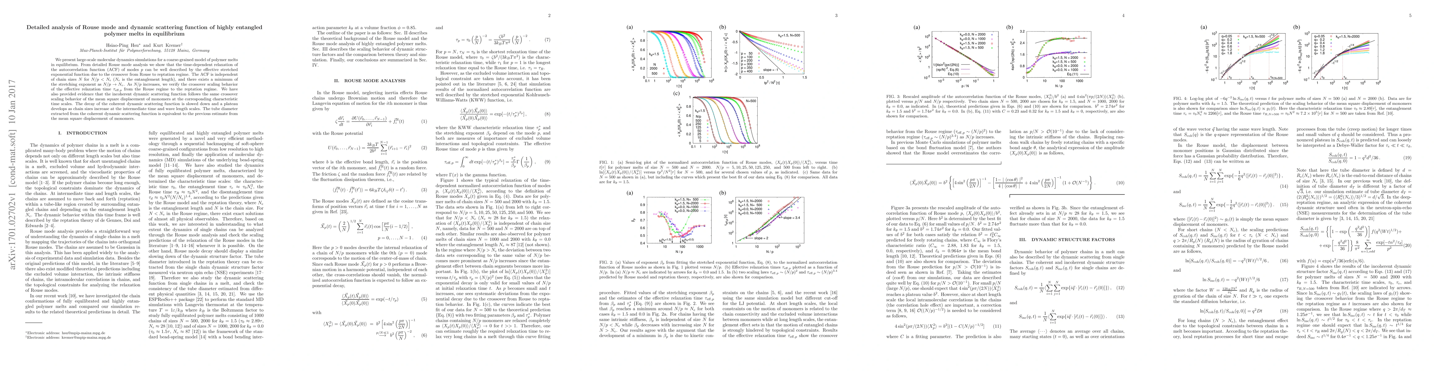 model of polymer melts in equilibrium. From detailed Rouse mode analysis we