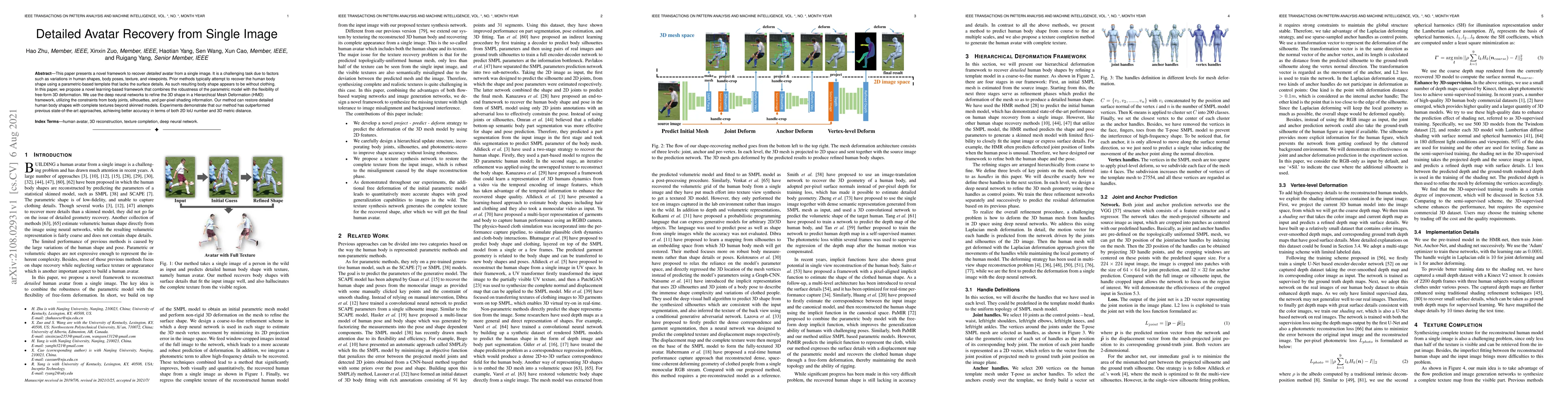 Researchers developed a new method to recover detailed avatars from single images, outperforming previous state-of-the-art approaches with higher accuracy in shape recovery and texture detail.