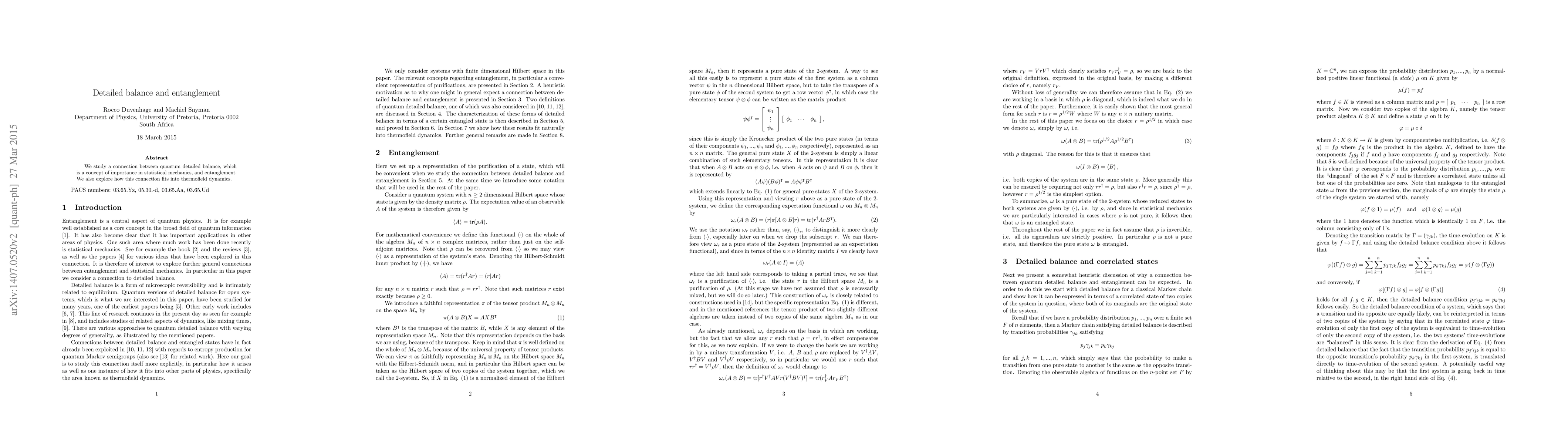We study a connection between quantum detailed balance, which is a concept of importance in statistical mechanics, and entanglement. We also explore how this connection fits into thermofield dynamics.