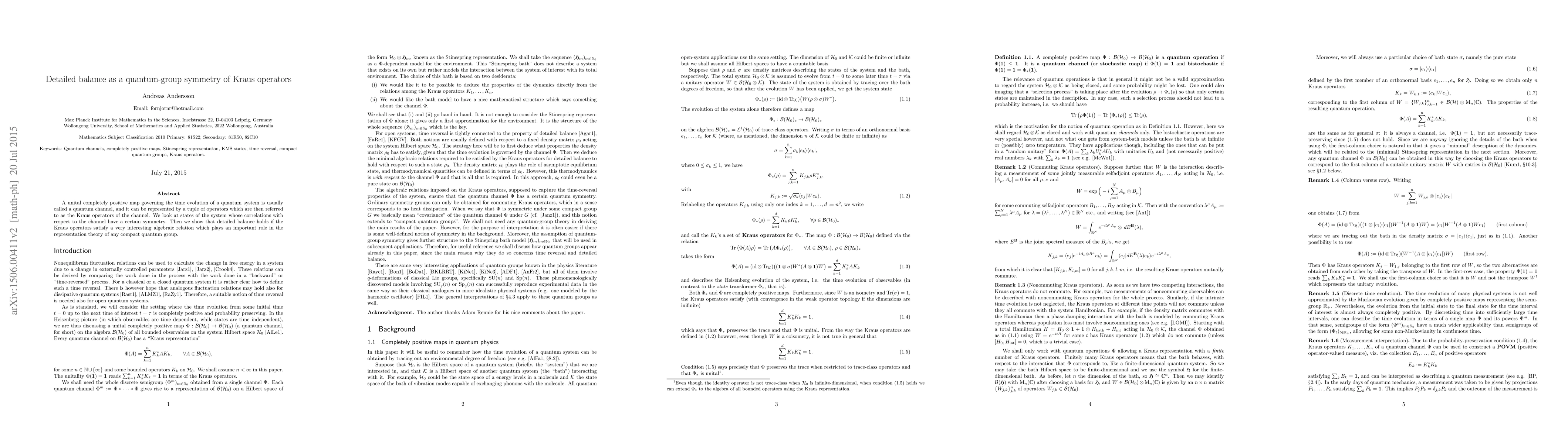 A study found that detailed balance holds in quantum systems if Kraus operators satisfy a specific algebraic relation related to compact quantum groups. This has implications for understanding the symmetry of quantum channels.