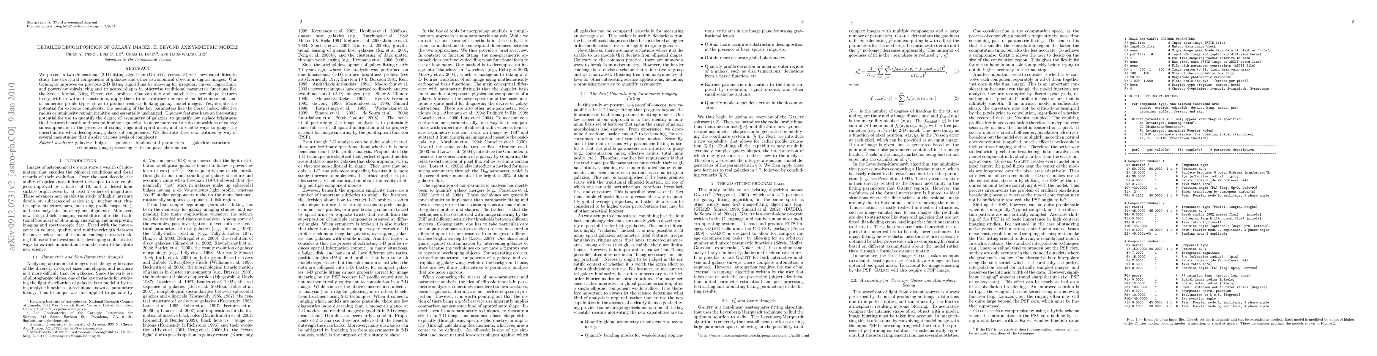 We present a two-dimensional (2-D) fitting algorithm (GALFIT, Version 3) with new capabilities to study the structural components of galaxies and other astronomical objects in digital images. Our technique improves on previous 2-D fitting algorithms by allowing for irregular, curved, logarithmic and power-law spirals, ring and truncated shapes in otherwise traditional parametric functions like the Sersic, Moffat, King, Ferrer, etc., profiles. One can mix and match these new shape features freely, with or without constraints, apply them to an arbitrary number of model components and of numerous profile types, so as to produce realistic-looking galaxy model images. Yet, despite the potential for extreme complexity, the meaning of the key parameters like the Sersic index, effective radius or luminosity remain intuitive and essentially unchanged. The new features have an interesting potential for use to quantify the degree of asymmetry of galaxies, to quantify low surface brightness tidal features beneath and beyond luminous galaxies, to allow more realistic decompositions of galaxy subcomponents in the presence of strong rings and spiral arms, and to enable ways to gauge the uncertainties when decomposing galaxy subcomponents. We illustrate these new features by way of several case studies that display various levels of complexity.