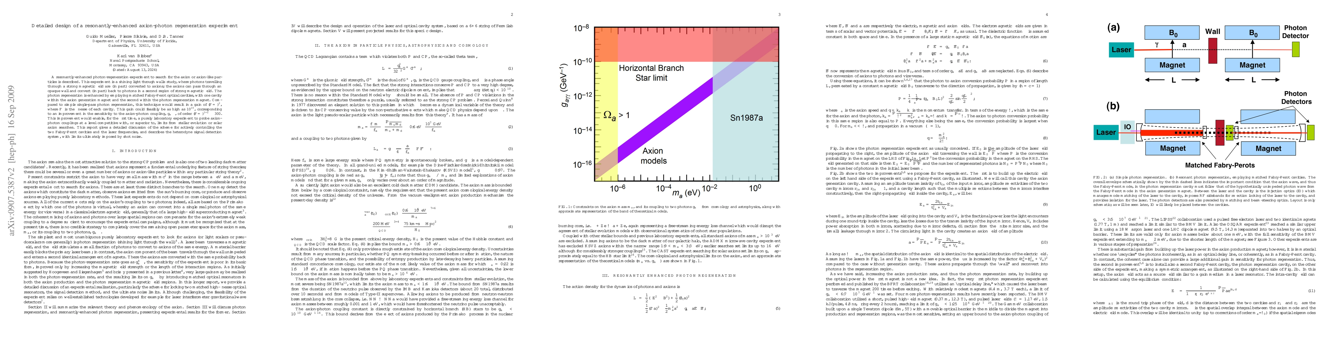A resonantly-enhanced photon-regeneration experiment to search for the axion or axion-like particles is described. This experiment is a shining light through walls study, where photons travelling through a strong magnetic field are (in part) converted to axions; the axions can pass through an opaque wall and convert (in part) back to photons in a second region of strong magnetic field. The photon regeneration is enhanced by employing matched Fabry-Perot optical cavities, with one cavity within the axion generation magnet and the second within the photon regeneration magnet. Compared to simple single-pass photon regeneration, this technique would result in a gain of (F/pi)^2, where F is the finesse of each cavity. This gain could feasibly be as high as 10^(10), corresponding to an improvement in the sensitivity to the axion-photon coupling, g_(agg), of order (F/pi)^(1/2) ~ 300. This improvement would enable, for the first time, a purely laboratory experiment to probe axion-photon couplings at a level competitive with, or superior to, limits from stellar evolution or solar axion searches. This report gives a detailed discussion of the scheme for actively controlling the two Fabry-Perot cavities and the laser frequencies, and describes the heterodyne signal detection system, with limits ultimately imposed by shot noise.