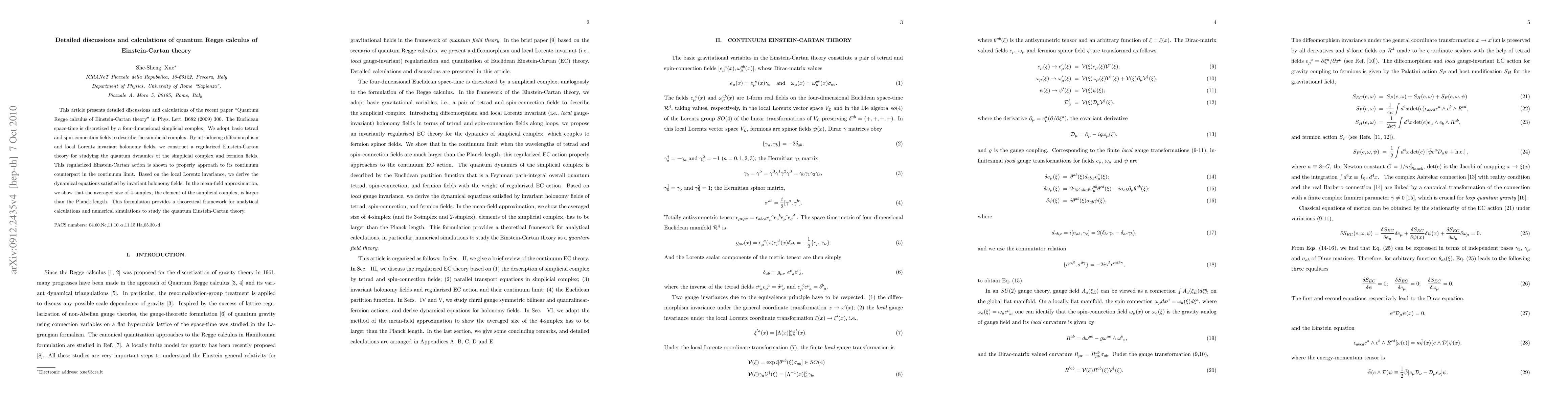 This article presents detailed discussions and calculations of the recent paper "Quantum Regge calculus of Einstein-Cartan theory" in Phys. Lett. B682 (2009) 300. The Euclidean space-time is discretized by a four-dimensional simplicial complex. We adopt basic tetrad and spin-connection fields to describe the simplicial complex. By introducing diffeomorphism and local Lorentz invariant holonomy fields, we construct a regularized Einstein-Cartan theory for studying the quantum dynamics of the simplicial complex and fermion fields. This regularized Einstein-Cartan action is shown to properly approach to its continuum counterpart in the continuum limit. Based on the local Lorentz invariance, we derive the dynamical equations satisfied by invariant holonomy fields. In the mean-field approximation, we show that the averaged size of 4-simplex, the element of the simplicial complex, is larger than the Planck length. This formulation provides a theoretical framework for analytical calculations and numerical simulations to study the quantum Einstein-Cartan theory.