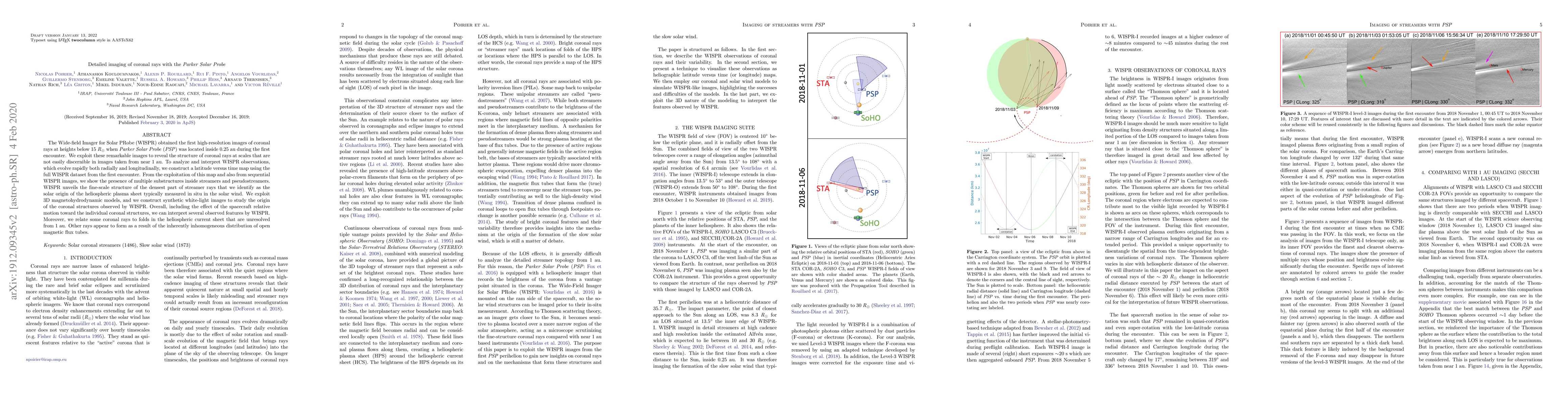 The Parker Solar Probe's WISPR instrument captured high-resolution images of coronal rays at unprecedented heights, revealing fine-scale structures and multiple substructures within streamers and pseudostreamers. These observations, combined with 3D magnetohydrodynamic models, suggest that these rays originate from the solar origin of the heliospheric plasma sheet.
