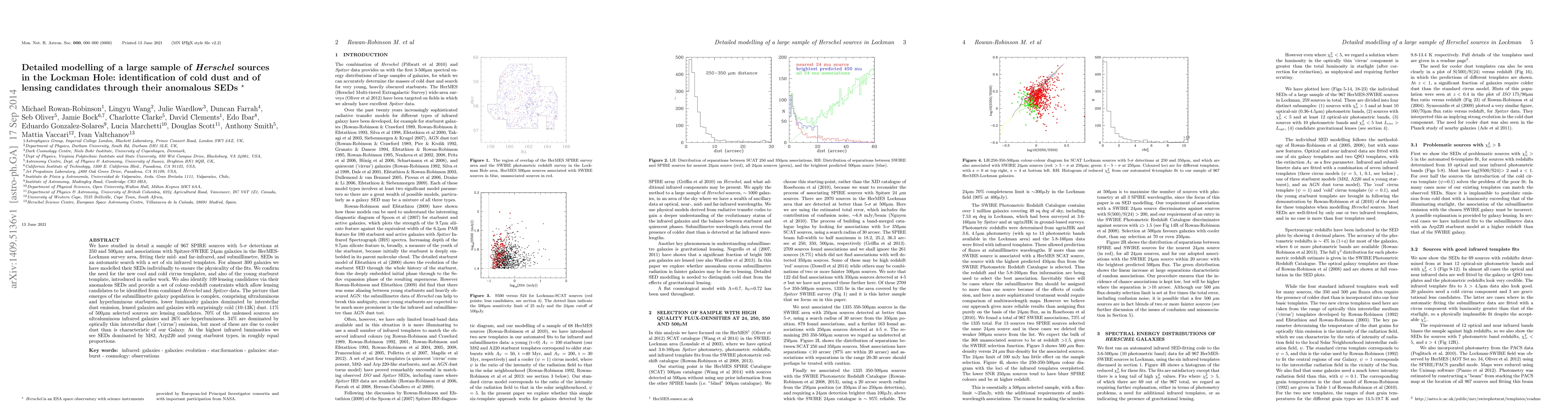 This study models the SEDs of 967 Herschel sources in the Lockman Hole, identifying cold dust and lensing candidates through anomalous spectral energy distributions. The research confirms the necessity of new cool and cold cirrus templates and finds 109 lensing candidates, revealing a complex submillimetre galaxy population.