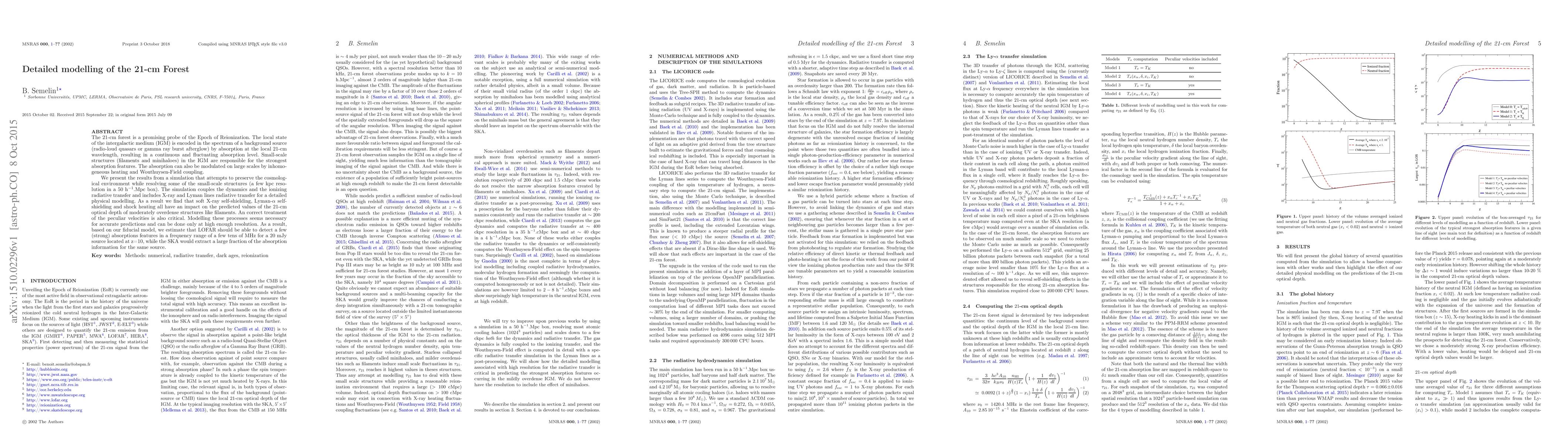 The 21-cm forest is a promising probe of the Epoch of Reionization. The local state of the intergalactic medium (IGM) is encoded in the spectrum of a background source (radio-loud quasars or gamma ray burst afterglow) by absorption at the local 21-cm wavelength, resulting in a continuous and fluctuating absorption level. Small-scale structures (filaments and minihaloes) in the IGM are responsible for the strongest absorption features. The absorption can also be modulated on large scales by inhomogeneous heating and Wouthuysen-Field coupling. We present the results from a simulation that attempts to preserve the cosmological environment while resolving some of the small-scale structures (a few kpc resolution in a 50 Mpc/h box). The simulation couples the dynamics and the ionizing radiative transfer and includes X-ray and Lyman lines radiative transfer for a detailed physical modelling. As a result we find that soft X-ray self-shielding, Lyman-alpha self-shielding and shock heating all have an impact on the predicted values of the 21-cm optical depth of moderately overdense structures like filaments. An correct treatment of the peculiar velocities is also critical. Modelling these processes seems necessary for accurate predictions and can be done only at high enough resolution. As a result, based on our fiducial model, we estimate that LOFAR should be able to detect a few (strong) absorptions features in a frequency range of a few tens of MHz for a 20 mJy source located at z=10, while the SKA would extract a large fraction of the absorption information for the same source.