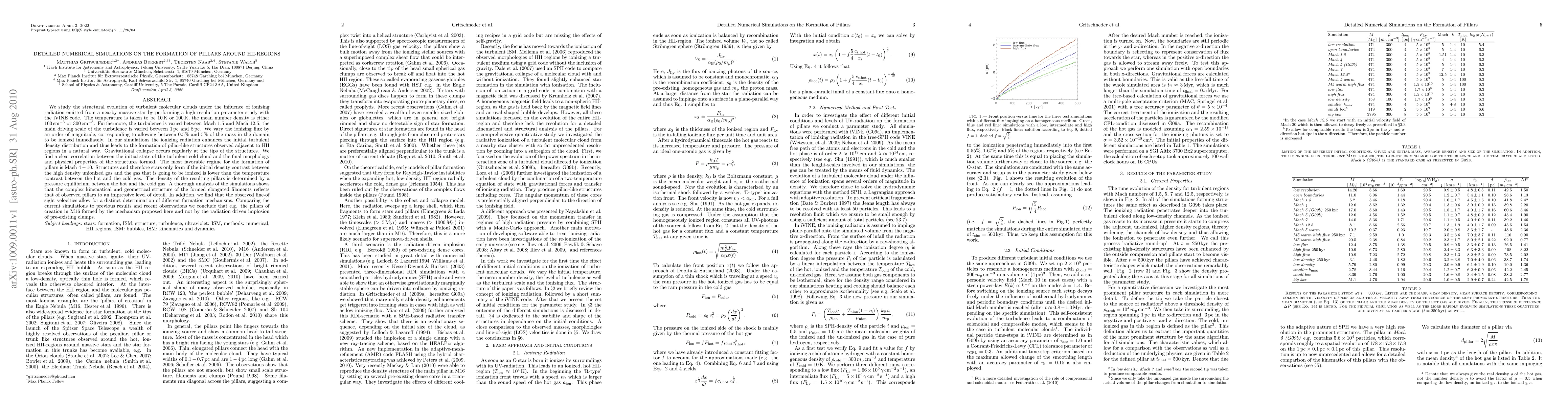 Researchers used simulations to study how turbulent molecular clouds form pillars around HII regions near massive stars. They found that specific conditions, such as turbulence speed and initial density contrast, lead to the formation of these structures, which often collapse to form stars.