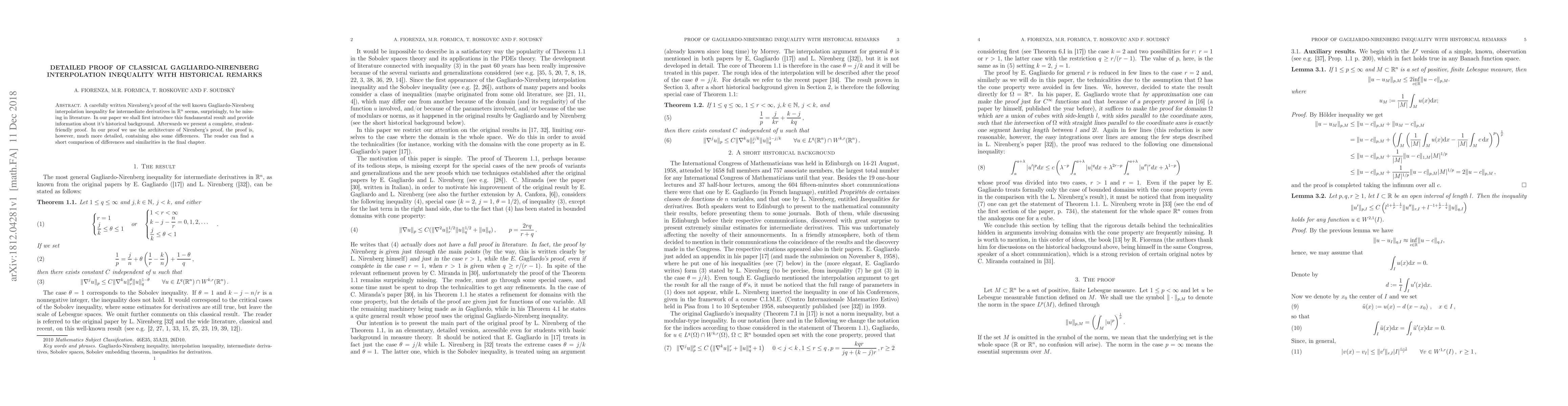 This paper provides a detailed proof of the Gagliardo-Nirenberg interpolation inequality for intermediate derivatives in R^n, highlighting its historical background and similarities with Nirenberg's original proof.