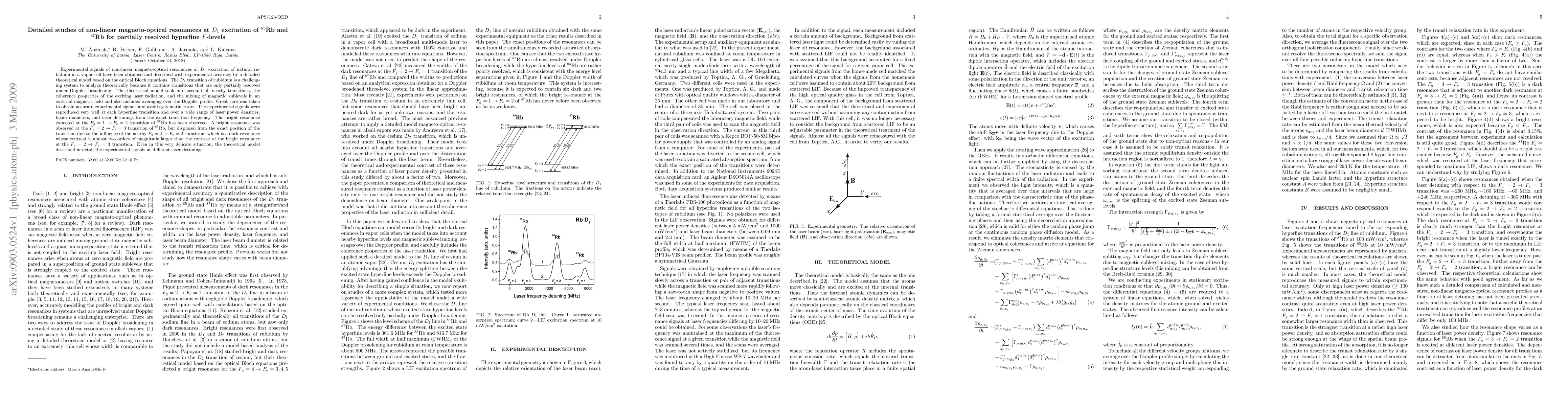 This paper reports on experimental observations and theoretical modeling of non-linear magneto-optical resonances in rubidium isotopes, highlighting accurate reproduction of signals for partially resolved hyperfine transitions and complex interplay between bright and dark resonances.