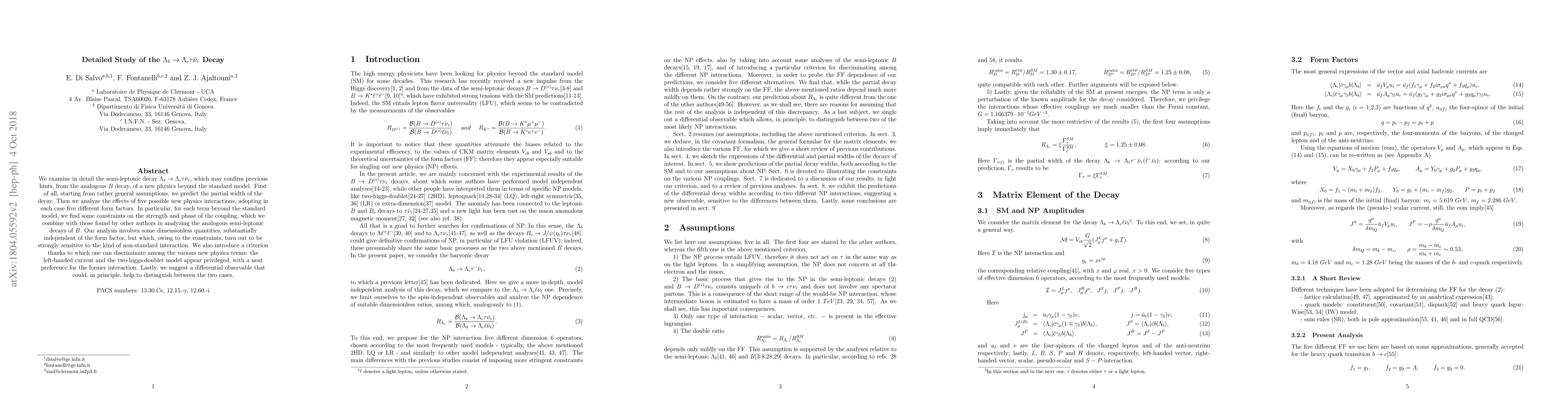 We examine in detail the semi-leptonic decay $\Lambda_b \to \Lambda_c \tau{\bar \nu}_{\tau}$, which may confirm previous hints, from the analogous $B$ decay, of a new physics beyond the standard model. First of all, starting from rather general assumptions, we predict the partial width of the decay. Then we analyze the effects of five possible new physics interactions, adopting in each case five different form factors. In particular, for each term beyond the standard model, we find some constraints on the strength and phase of the coupling, which we combine with those found by other authors in analyzing the analogous semi-leptonic decays of $B$. Our analysis involves some dimensionless quantities, substantially independent of the form factor, but which, owing to the constraints, turn out to be strongly sensitive to the kind of non-standard interaction. We also introduce a criterion thanks to which one can discriminate among the various new physics terms: the left-handed current and the two-higgs-doublet model appear privileged, with a neat preference for the former interaction. Lastly, we suggest a differential observable that could, in principle, help to distinguish between the two cases.