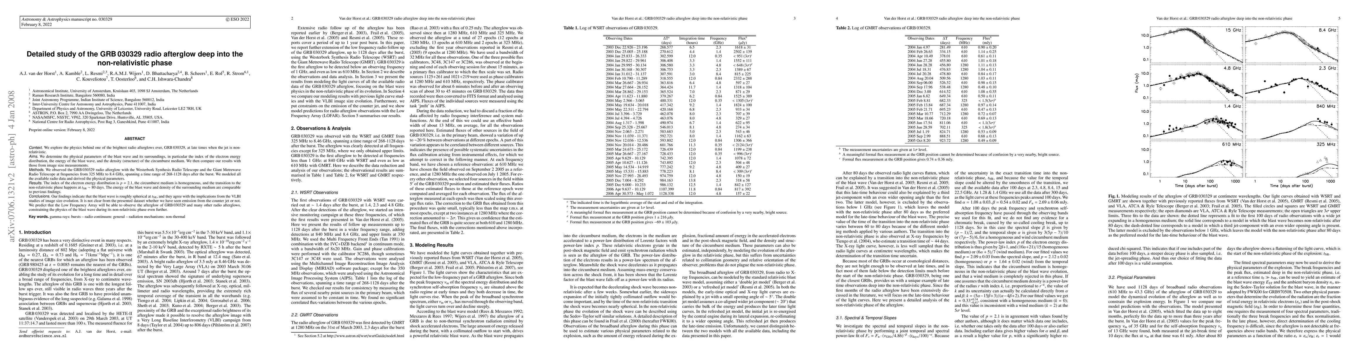 We explore the physics behind one of the brightest radio afterglows ever, GRB 030329, at late times when the jet is non-relativistic. We determine the physical parameters of the blast wave and its surroundings, in particular the index of the electron energy distribution, the energy of the blast wave, and the density (structure) of the circumburst medium. We then compare our results with those from image size measurements. We observed the GRB 030329 radio afterglow with the Westerbork Synthesis Radio Telescope and the Giant Metrewave Radio Telescope at frequencies from 325 MHz to 8.4 GHz, spanning a time range of 268-1128 days after the burst. We modeled all the available radio data and derived the physical parameters. The index of the electron energy distribution is p=2.1, the circumburst medium is homogeneous, and the transition to the non-relativistic phase happens at t_NR ~ 80 days. The energy of the blast wave and density of the surrounding medium are comparable to previous findings. Our findings indicate that the blast wave is roughly spherical at t_NR, and they agree with the implications from the VLBI studies of image size evolution. It is not clear from the presented dataset whether we have seen emission from the counter jet or not. We predict that the Low Frequency Array will be able to observe the afterglow of GRB 030329 and many other radio afterglows, constraining the physics of the blast wave during its non-relativistic phase even further.