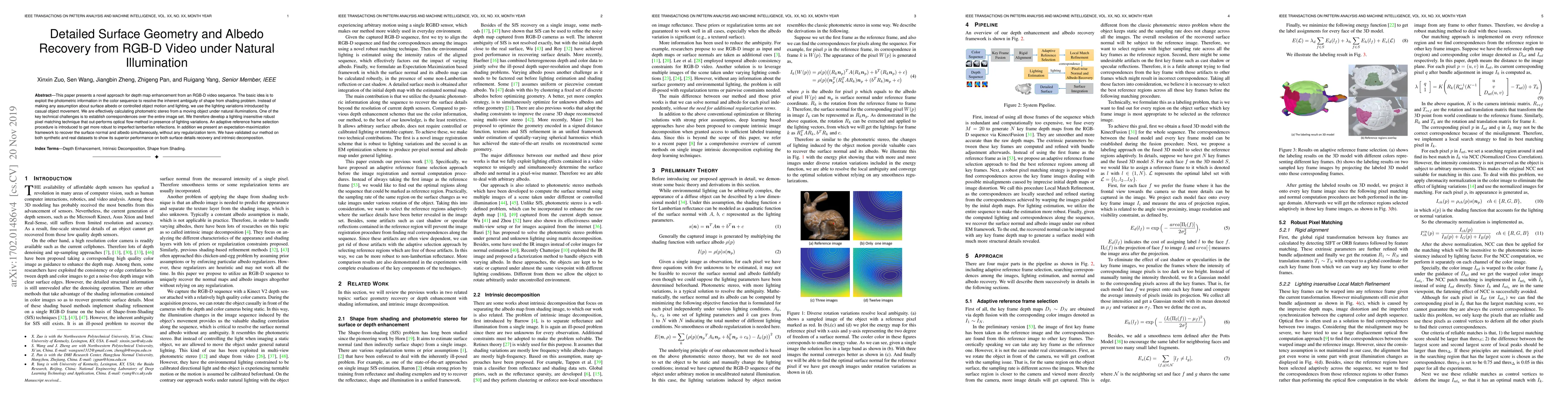In this paper we present a novel approach for depth map enhancement from an RGB-D video sequence. The basic idea is to exploit the shading information in the color image. Instead of making assumption about surface albedo or controlled object motion and lighting, we use the lighting variations introduced by casual object movement. We are effectively calculating photometric stereo from a moving object under natural illuminations. The key technical challenge is to establish correspondences over the entire image set. We therefore develop a lighting insensitive robust pixel matching technique that out-performs optical flow method in presence of lighting variations. In addition we present an expectation-maximization framework to recover the surface normal and albedo simultaneously, without any regularization term. We have validated our method on both synthetic and real datasets to show its superior performance on both surface details recovery and intrinsic decomposition.