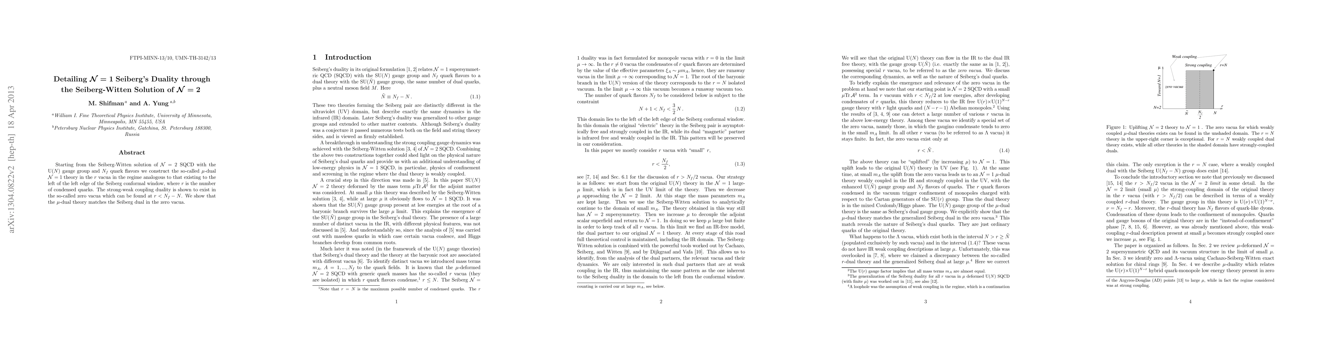 This paper constructs the \mu-dual N=1 theory from the Seiberg-Witten solution of N=2 SQCD and demonstrates strong-weak coupling duality in the zero vacua, showing that the \mu-dual theory matches the Seiberg dual in this regime.