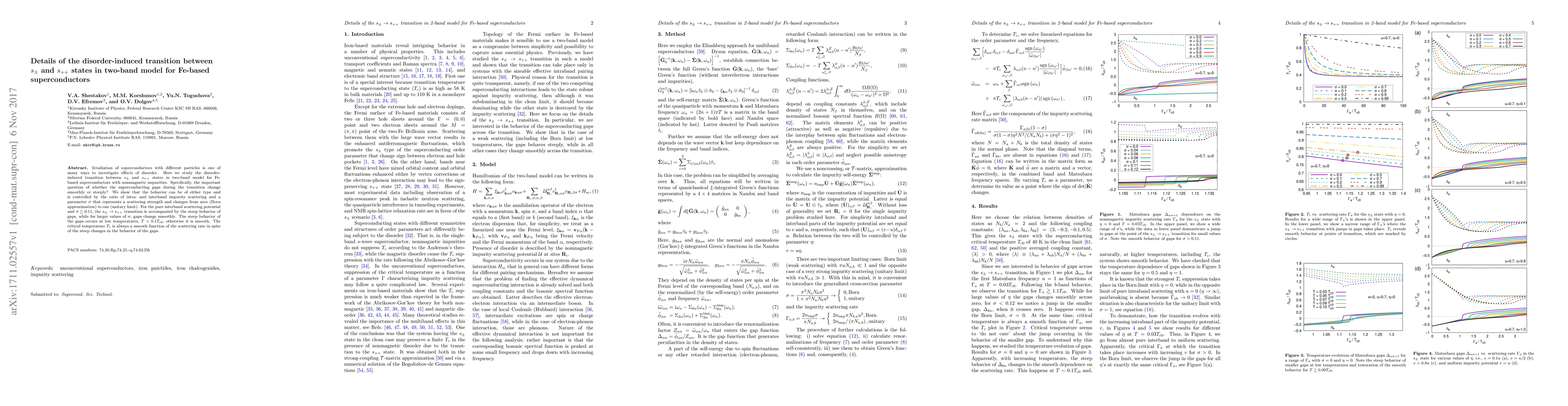 This paper investigates the disorder-induced transition between $s_\pm$ and $s_{++}$ states in Fe-based superconductors under nonmagnetic impurities. It finds that the transition can exhibit either steep or smooth changes in superconducting gaps, depending on the ratio of intra- and interband scattering and a scattering strength parameter $\sigma$.