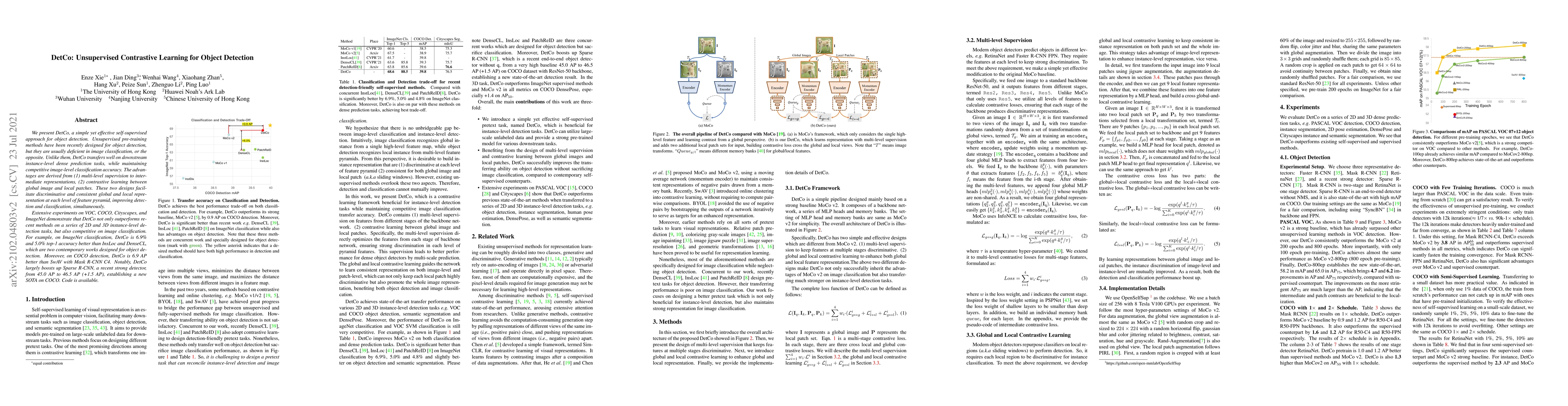 DetCo, a novel unsupervised contrastive learning approach, improves object detection accuracy while maintaining global image recognition capabilities, outperforming state-of-the-art methods on multiple tasks.
