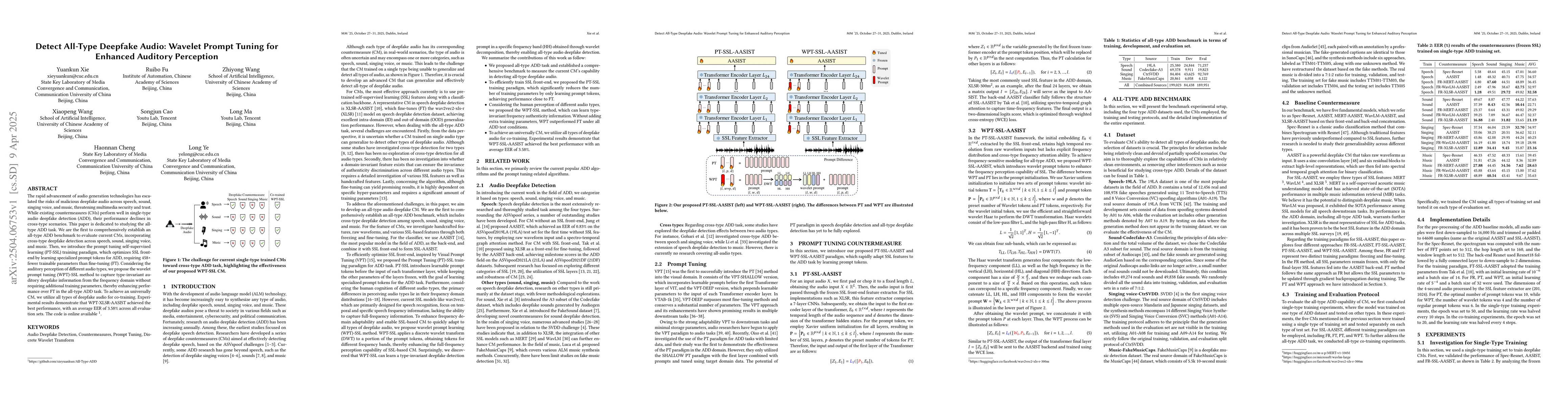 This paper establishes a comprehensive all-type ADD benchmark and introduces the PT-SSL training paradigm, optimizing SSL frontend by learning specialized prompt tokens for ADD, requiring 458x fewer trainable parameters than fine-tuning. It also proposes the wavelet prompt tuning (WPT)-SSL method to capture type-invariant auditory deepfake information.