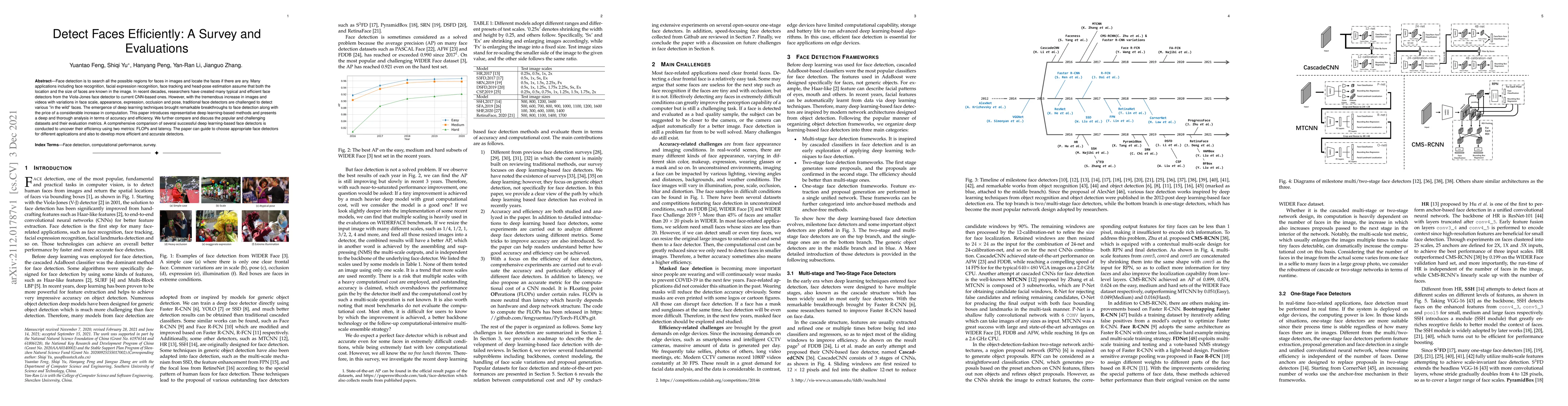 This paper surveys and evaluates various deep learning-based face detection methods, comparing their accuracy and efficiency using metrics like FLOPs and latency. It highlights the challenges of traditional detectors in handling diverse "in the wild" faces and guides the selection of appropriate detectors for different applications.