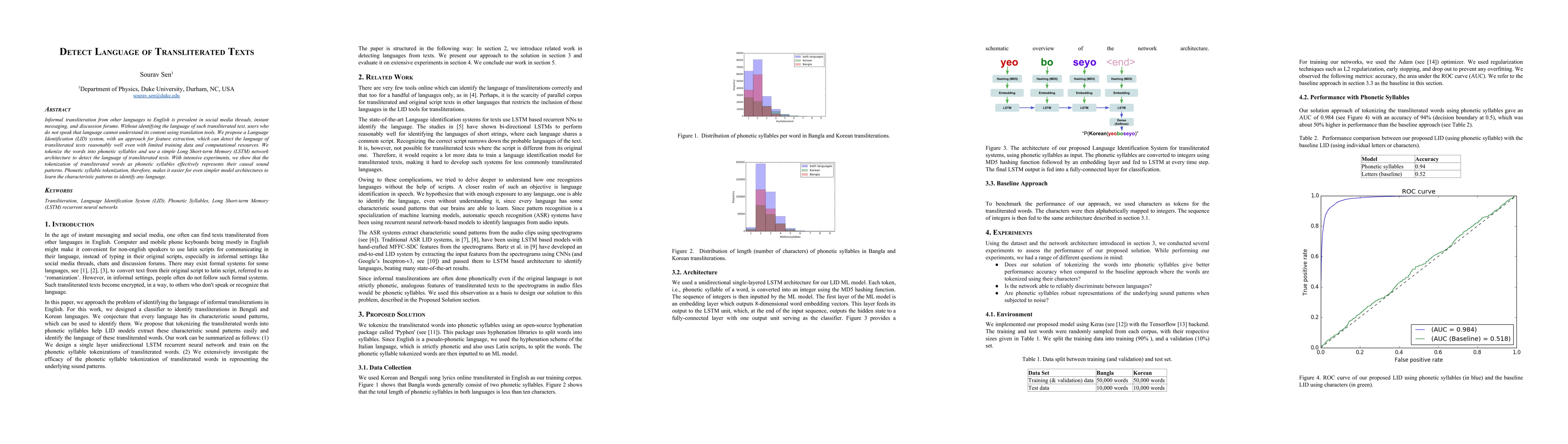 A proposed Language Identification (LID) system using phonetic syllables as input features was trained for informal Bangla and Korean transliterations.