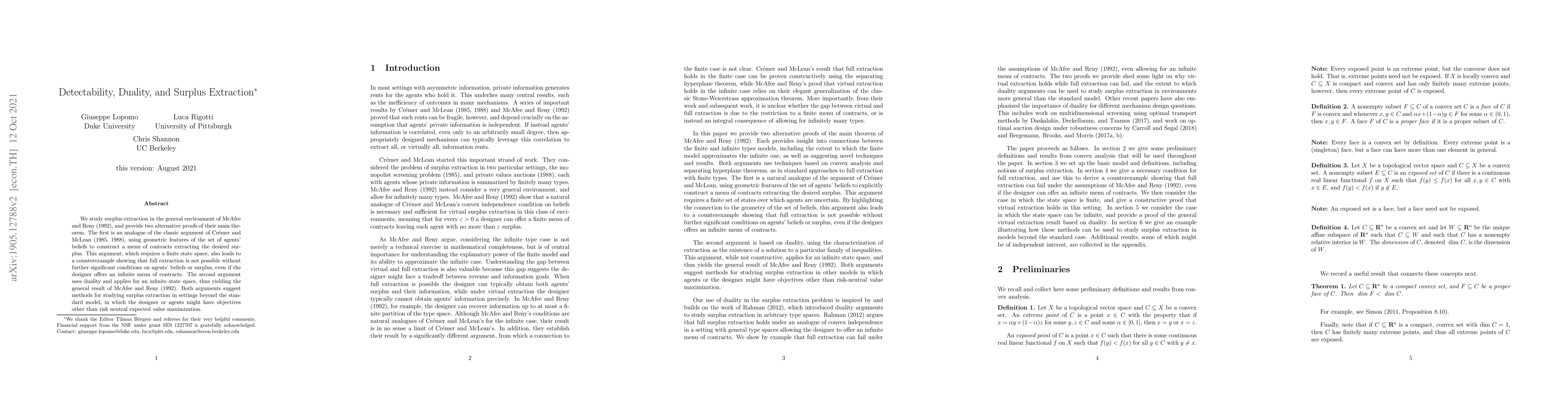 We study surplus extraction in the general environment of McAfee and Reny (1992), and provide two alternative proofs of their main theorem. The first is an analogue of the classic argument of Cremer and McLean (1985, 1988), using geometric features of the set of agents' beliefs to construct a menu of contracts extracting the desired surplus. This argument, which requires a finite state space, also leads to a counterexample showing that full extraction is not possible without further significant conditions on agents' beliefs or surplus, even if the designer offers an infinite menu of contracts. The second argument uses duality and applies for an infinite state space, thus yielding the general result of McAfee and Reny (1992). Both arguments suggest methods for studying surplus extraction in settings beyond the standard model, in which the designer or agents might have objectives other than risk neutral expected value maximization.