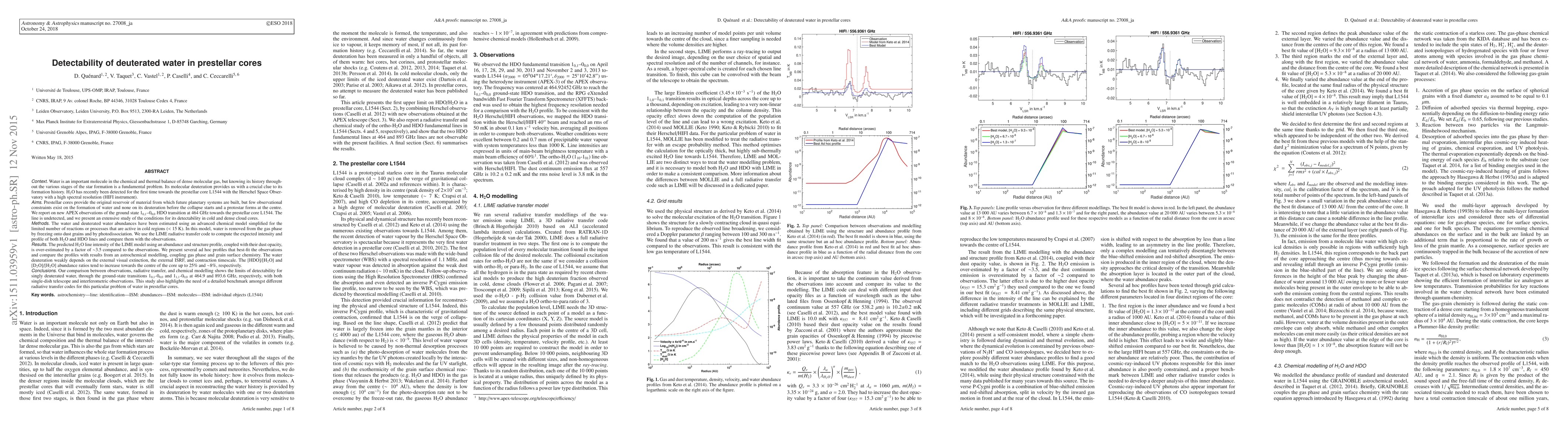 This paper reports on the non-detection of the ground state HDO transition in the prestellar core L1544 using APEX observations, and discusses the detectability limits of deuterated water in cold, dense molecular clouds. The study combines observational data with advanced chemical and radiative transfer models to explore the formation history of water in star-forming regions.