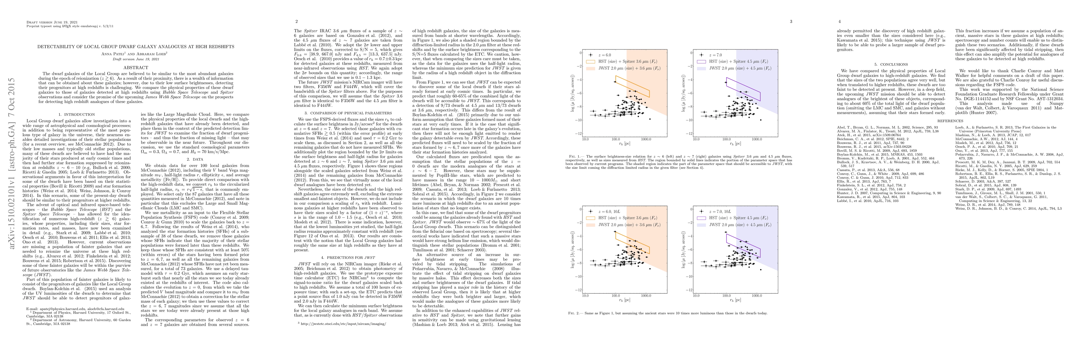 This study investigates the detectability of Local Group dwarf galaxy analogues at high redshifts, using Hubble Space Telescope and Spitzer observations to compare their physical properties with those of distant galaxies.