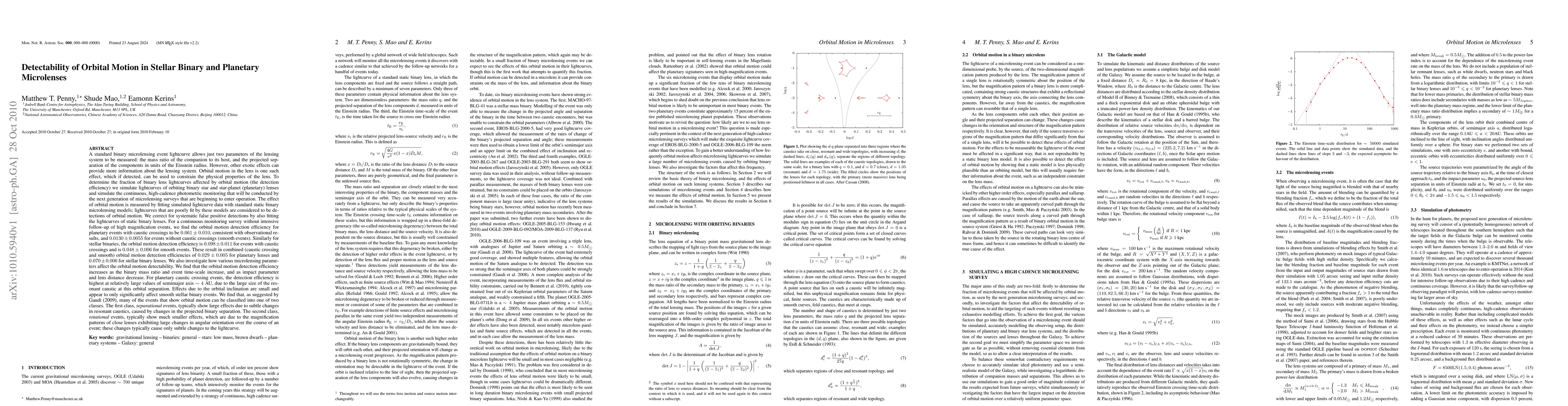 This paper investigates the detectability of orbital motion in binary star and star-planet microlensing events, finding detection efficiencies of 0.061+-0.010 for planetary lenses with caustic crossings and 0.0130+-0.0055 for smooth events. For stellar binaries, efficiencies are 0.098+-0.011 for caustic crossings and 0.048+-0.006 for smooth events, leading to combined detection efficiencies of 0.029+-0.005 for planetary and 0.070+-0.006 for stellar binaries.
