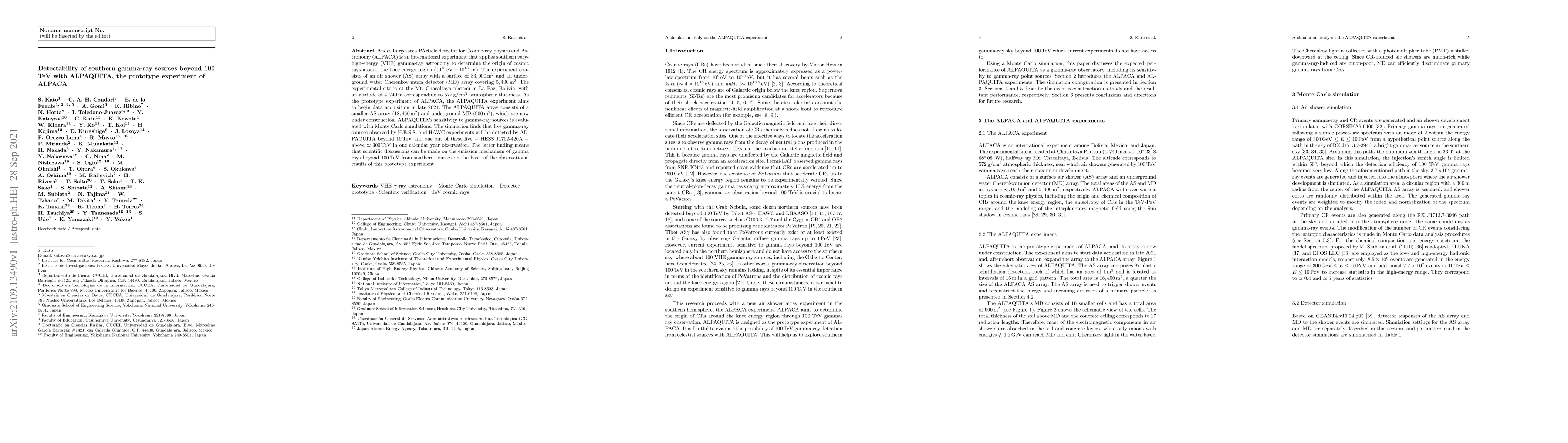 The ALPAQUITA prototype experiment aims to detect southern gamma-ray sources beyond 100 TeV, serving as a precursor to the larger ALPACA project. Monte Carlo simulations indicate that ALPAQUITA can detect five gamma-ray sources above 10 TeV, including HESS J1702-420A above 300 TeV, enabling scientific discussions on high-energy gamma-ray emissions.