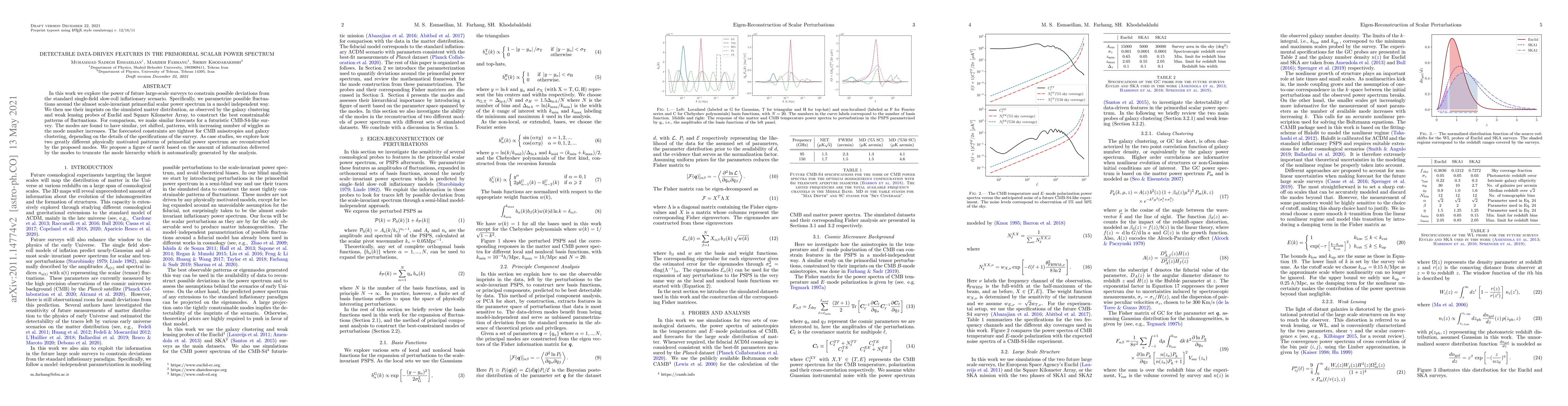 In this work we explore the power of future large-scale surveys to constrain possible deviations from the standard single-field slow-roll inflationary scenario. Specifically, we parametrize possible fluctuations around the almost scale-invariant primordial scalar power spectrum in a model independent way. We then use their imprints on the simulated matter distribution, as observed by the galaxy clustering and weak lensing probes of Euclid and Square Kilometer Array, to construct the best constrainable patterns of fluctuations. For comparison, we make similar forecasts for a futuristic CMB-S4-like survey. The modes are found to have similar, yet shifted, patterns, with increasing number of wiggles as the mode number increases. The forecasted constraints are tightest for CMB anisotropies and galaxy clustering, depending on the details of the specifications of the survey. As case studies, we explore how two greatly different physically motivated patterns of primordial power spectrum are reconstructed by the proposed modes. We propose a figure of merit based on the amount of information delivered by the modes to truncate the mode hierarchy which is automatically generated by the analysis.