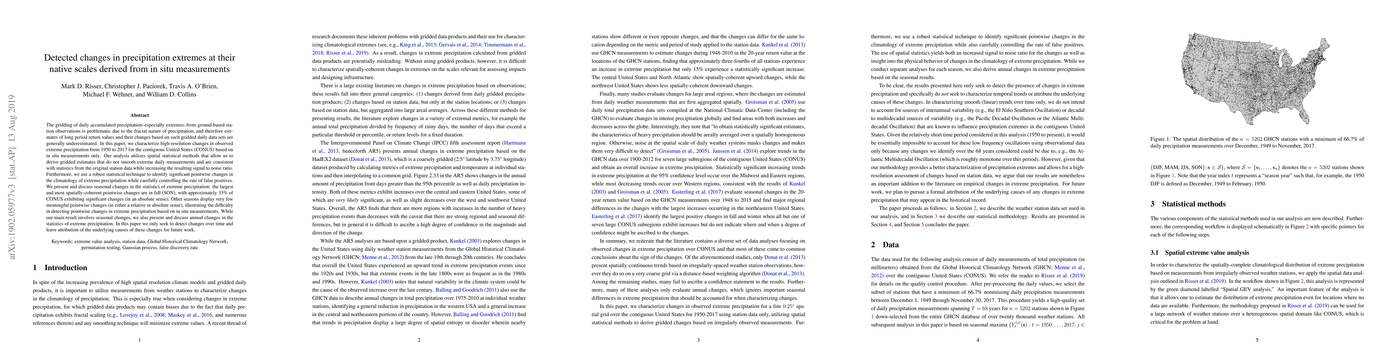This paper characterizes high-resolution changes in extreme precipitation from 1950 to 2017 in the contiguous U.S. using in situ measurements, revealing significant seasonal variations, particularly in fall, while noting minimal changes in other seasons. The study employs spatial statistical methods to derive accurate gridded estimates without smoothing extreme daily data.