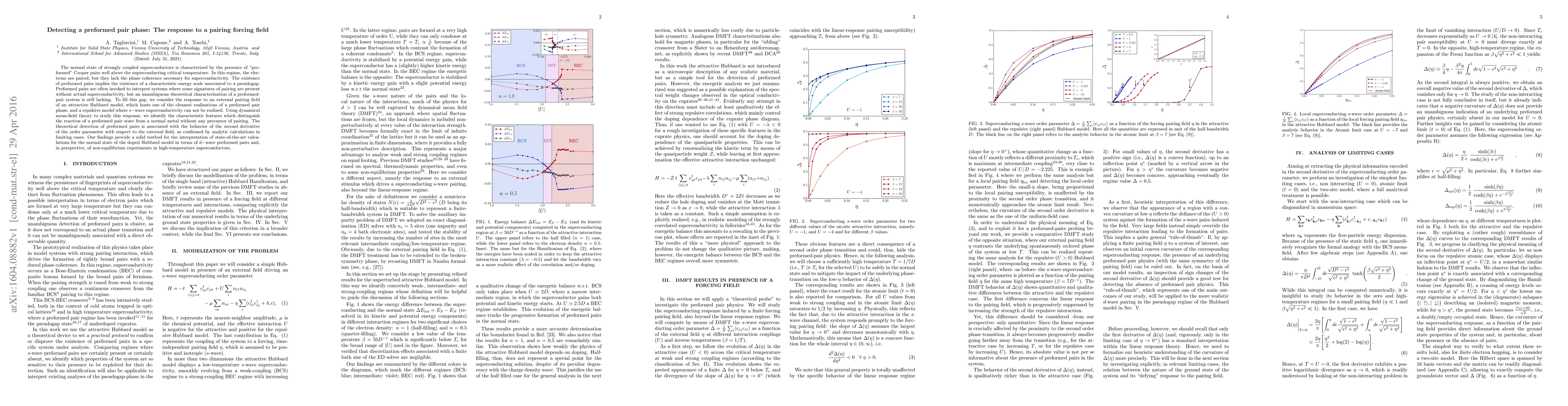 This paper explores the detection of a preformed pair phase in strongly coupled superconductors using the response to an external pairing field. It identifies characteristic features distinguishing preformed pairs from normal metals, focusing on the second derivative of the order parameter, which provides a theoretical basis for interpreting high-temperature superconductors.