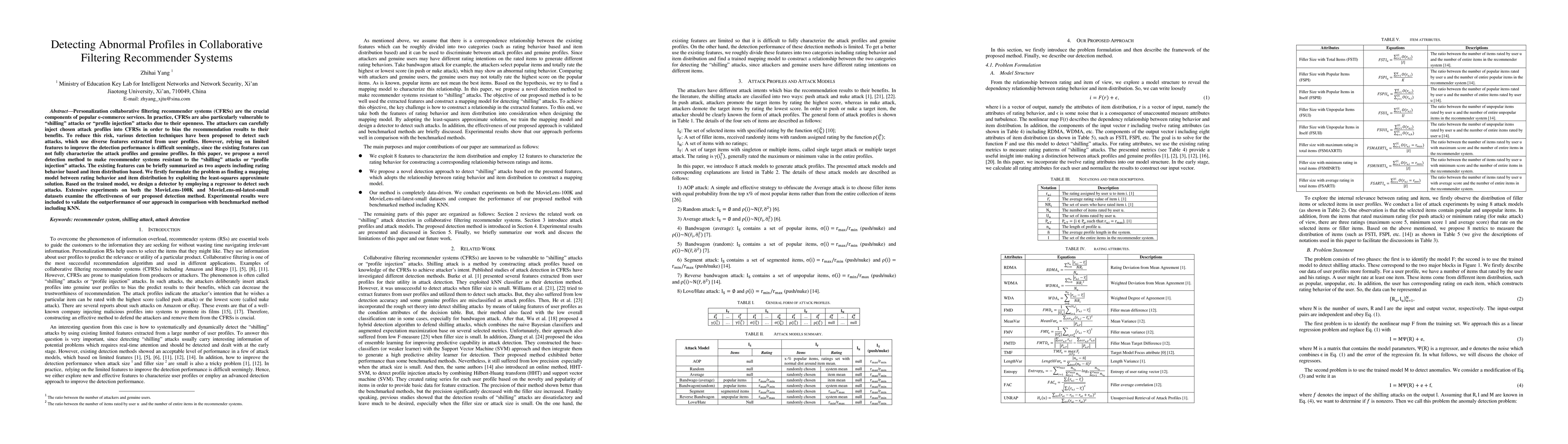 Personalization collaborative filtering recommender systems (CFRSs) are the crucial components of popular e-commerce services. In practice, CFRSs are also particularly vulnerable to "shilling" attacks or "profile injection" attacks due to their openness. The attackers can carefully inject chosen attack profiles into CFRSs in order to bias the recommendation results to their benefits. To reduce this risk, various detection techniques have been proposed to detect such attacks, which use diverse features extracted from user profiles. However, relying on limited features to improve the detection performance is difficult seemingly, since the existing features can not fully characterize the attack profiles and genuine profiles. In this paper, we propose a novel detection method to make recommender systems resistant to the "shilling" attacks or "profile injection" attacks. The existing features can be briefly summarized as two aspects including rating behavior based and item distribution based. We firstly formulate the problem as finding a mapping model between rating behavior and item distribution by exploiting the least-squares approximate solution. Based on the trained model, we design a detector by employing a regressor to detect such attacks. Extensive experiments on both the MovieLens-100K and MovieLens-ml-latest-small datasets examine the effectiveness of our proposed detection method. Experimental results were included to validate the outperformance of our approach in comparison with benchmarked method including KNN.