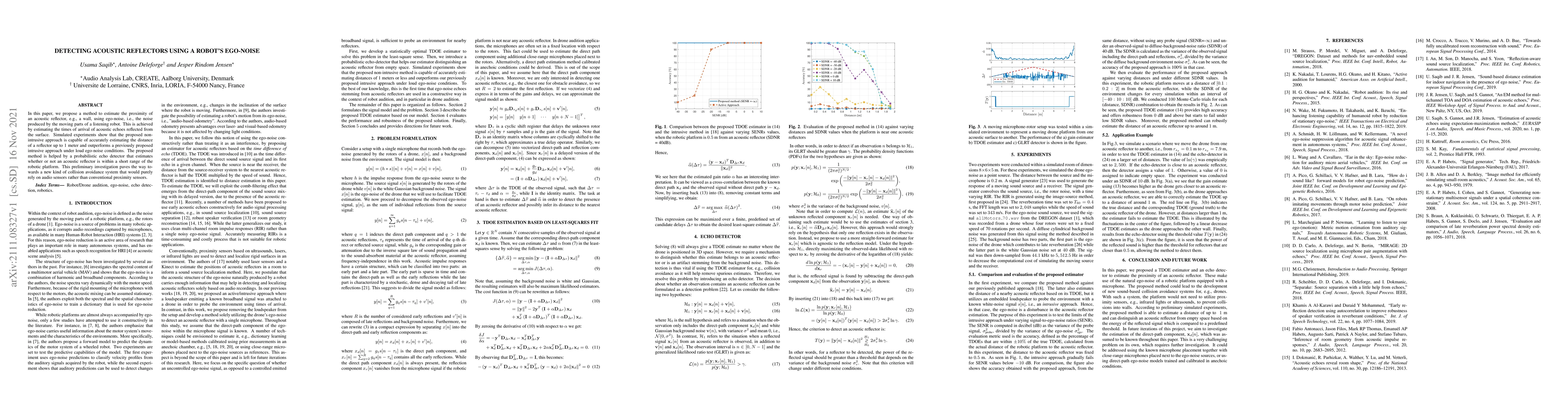 In this paper, we propose a method to estimate the proximity of an acoustic reflector, e.g., a wall, using ego-noise, i.e., the noise produced by the moving parts of a listening robot. This is achieved by estimating the times of arrival of acoustic echoes reflected from the surface. Simulated experiments show that the proposed nonintrusive approach is capable of accurately estimating the distance of a reflector up to 1 meter and outperforms a previously proposed intrusive approach under loud ego-noise conditions. The proposed method is helped by a probabilistic echo detector that estimates whether or not an acoustic reflector is within a short range of the robotic platform. This preliminary investigation paves the way towards a new kind of collision avoidance system that would purely rely on audio sensors rather than conventional proximity sensors.