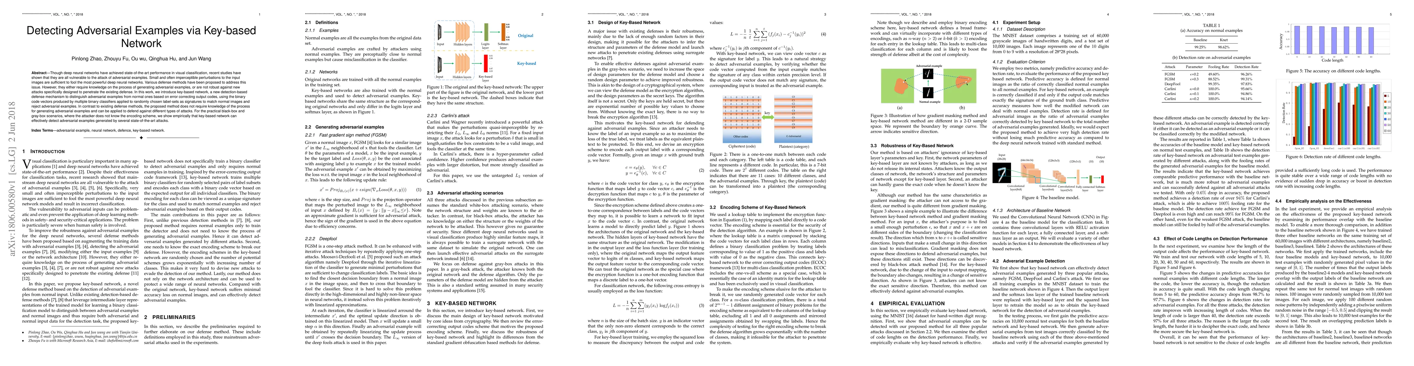 A new defense mechanism called key-based network detects adversarial examples in images without requiring knowledge of their generation process. It uses error correcting output codes to distinguish normal images from adversarial ones.