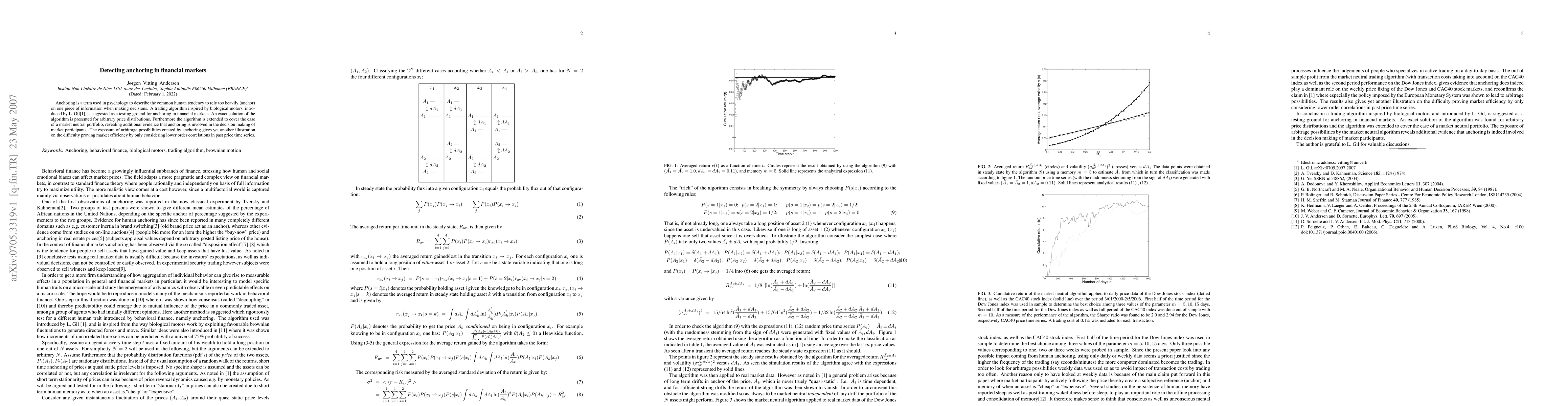 Anchoring is a term used in psychology to describe the common human tendency to rely too heavily (anchor) on one piece of information when making decisions. A trading algorithm inspired by biological motors, introduced by L. Gil\cite{Gil}, is suggested as a testing ground for anchoring in financial markets. An exact solution of the algorithm is presented for arbitrary price distributions. Furthermore the algorithm is extended to cover the case of a market neutral portfolio, revealing additional evidence that anchoring is involved in the decision making of market participants. The exposure of arbitrage possibilities created by anchoring gives yet another illustration on the difficulty proving market efficiency by only considering lower order correlations in past price time series