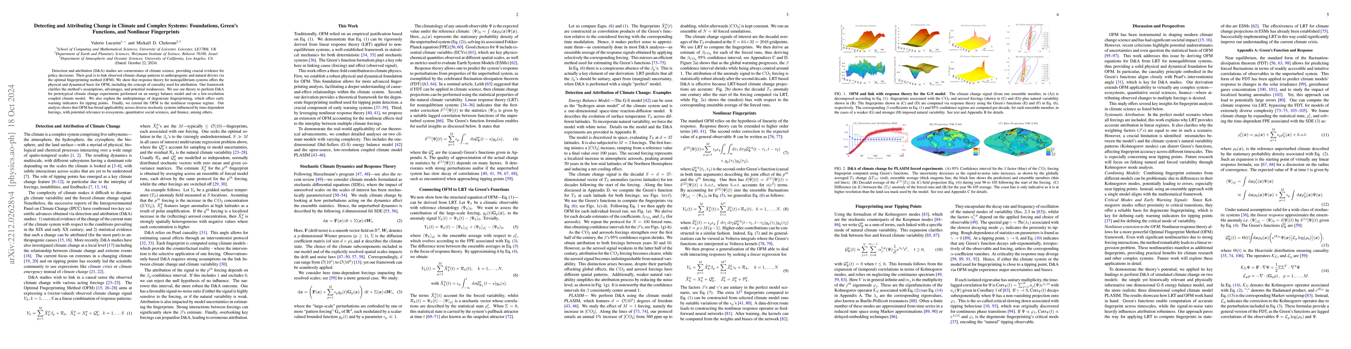 This paper explores the foundations of optimal fingerprinting for detecting and attributing climate change, emphasizing the role of response theory in nonequilibrium systems. It extends the method to nonlinear regimes and highlights its applicability across various stochastic systems, while also discussing its assumptions and limitations.
