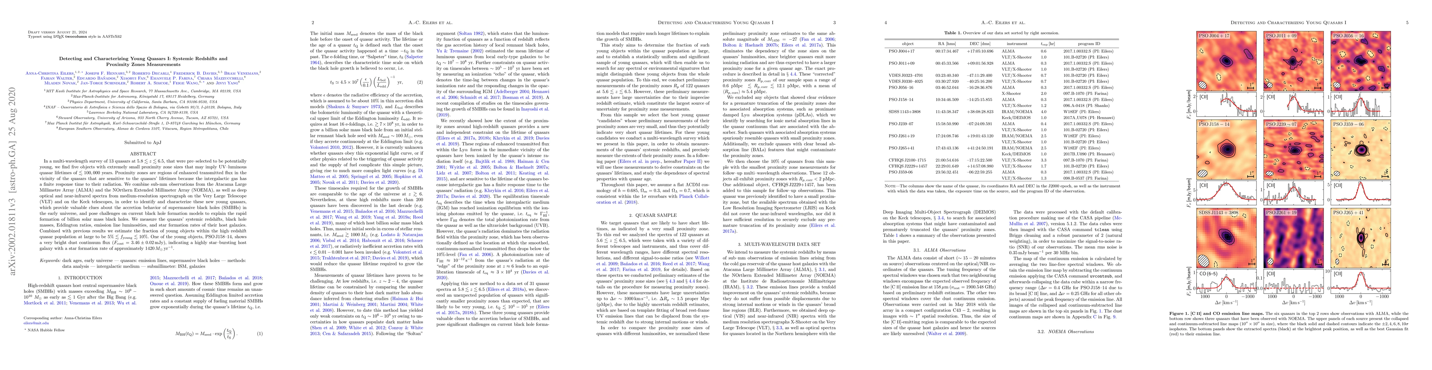 In a multi-wavelength survey of $13$ quasars at $5.8\lesssim z\lesssim6.5$, that were pre-selected to be potentially young, we find five objects with extremely small proximity zone sizes that may imply UV-luminous quasar lifetimes of $\lesssim 100,000$ years. Proximity zones are regions of enhanced transmitted flux in the vicinity of the quasars that are sensitive to the quasars' lifetimes because the intergalactic gas has a finite response time to their radiation. We combine sub-mm observations from the Atacama Large Millimetre Array (ALMA) and the NOrthern Extended Millimeter Array (NOEMA), as well as deep optical and near-infrared spectra from medium-resolution spectrograph on the Very Large Telescope (VLT) and on the Keck telescopes, in order to identify and characterize these new young quasars, which provide valuable clues about the accretion behavior of supermassive black holes (SMBHs) in the early universe, and pose challenges on current black hole formation models to explain the rapid formation of billion solar mass black holes. We measure the quasars' systemic redshifts, black hole masses, Eddington ratios, emission line luminosities, and star formation rates of their host galaxies. Combined with previous results we estimate the fraction of young objects within the high-redshift quasar population at large to be $5\%\lesssim f_{\rm young}\lesssim 10\%$. One of the young objects, PSO J158-14, shows a very bright dust continuum flux ($F_{\rm cont}=3.46\pm 0.02\,\rm mJy$), indicating a highly star-bursting host galaxy with a star formation rate of approximately $1420\,M_{\odot}\,\rm yr^{-1}$.