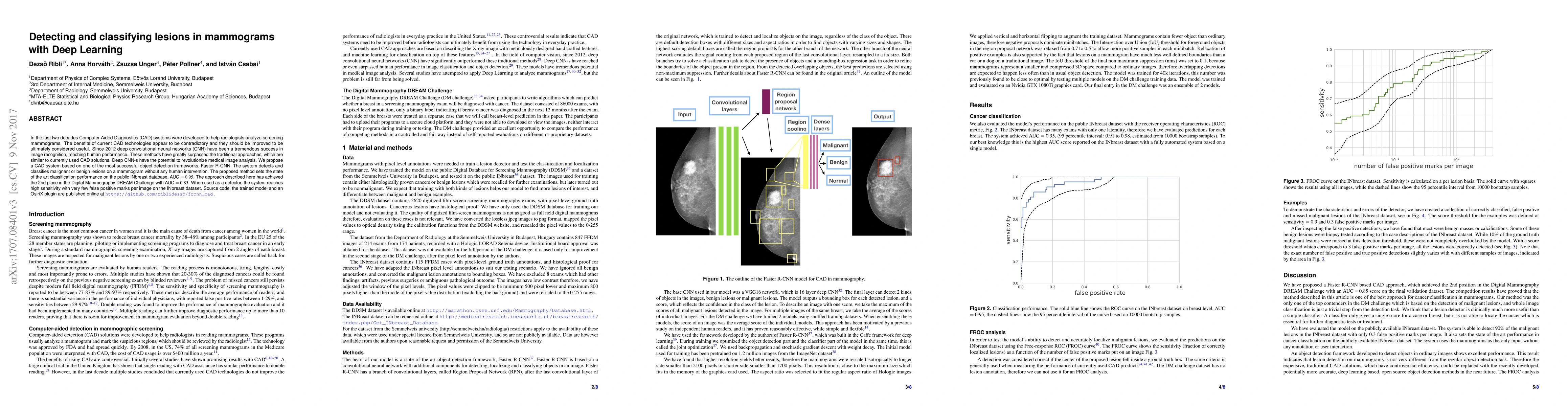 In the last two decades Computer Aided Diagnostics (CAD) systems were developed to help radiologists analyze screening mammograms. The benefits of current CAD technologies appear to be contradictory and they should be improved to be ultimately considered useful. Since 2012 deep convolutional neural networks (CNN) have been a tremendous success in image recognition, reaching human performance. These methods have greatly surpassed the traditional approaches, which are similar to currently used CAD solutions. Deep CNN-s have the potential to revolutionize medical image analysis. We propose a CAD system based on one of the most successful object detection frameworks, Faster R-CNN. The system detects and classifies malignant or benign lesions on a mammogram without any human intervention. The proposed method sets the state of the art classification performance on the public INbreast database, AUC = 0.95 . The approach described here has achieved the 2nd place in the Digital Mammography DREAM Challenge with AUC = 0.85 . When used as a detector, the system reaches high sensitivity with very few false positive marks per image on the INbreast dataset. Source code, the trained model and an OsiriX plugin are availaible online at https://github.com/riblidezso/frcnn_cad .