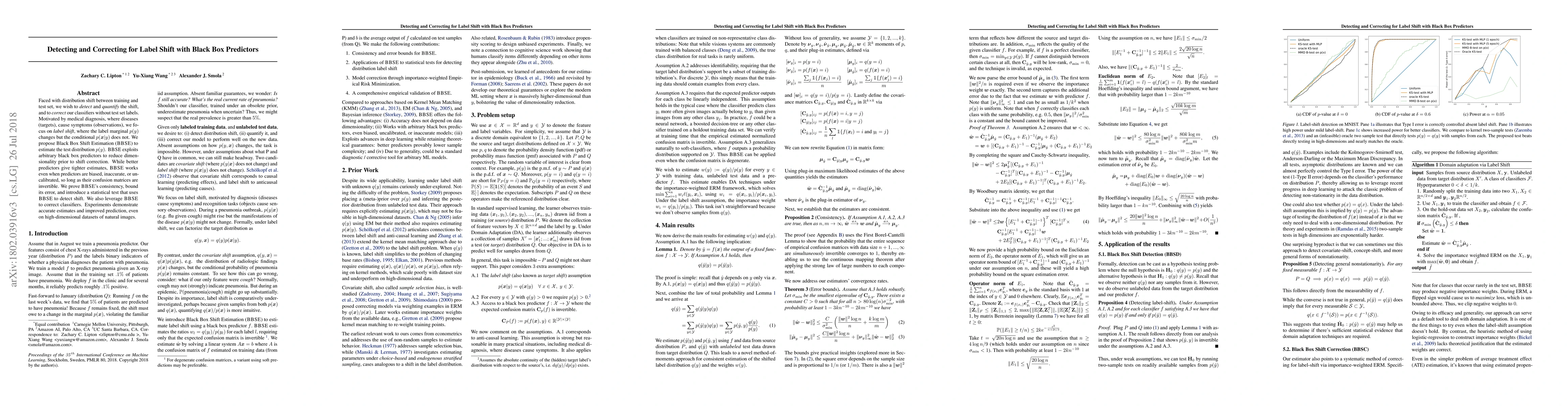 Researchers propose a method called Black Box Shift Estimation to detect label shift in machine learning models without access to test data, improving prediction accuracy even on high-dimensional datasets.