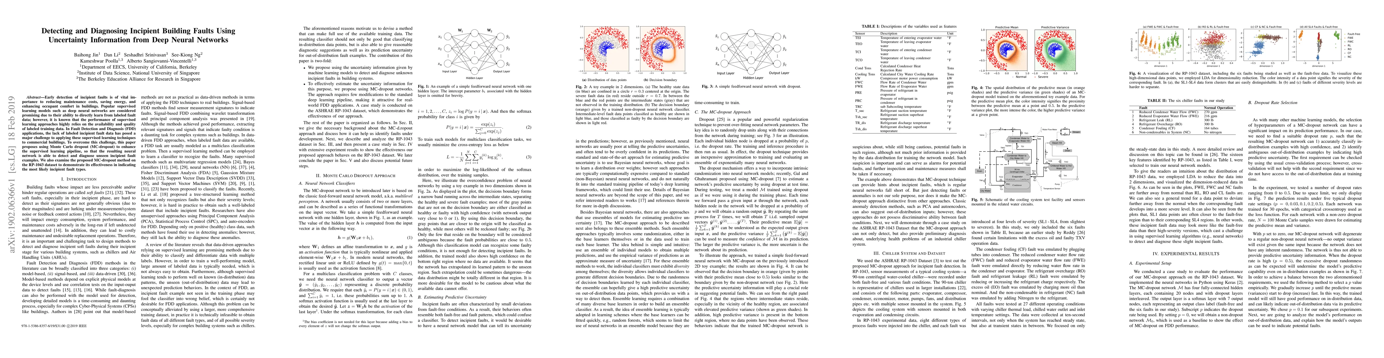 This paper proposes using Monte Carlo dropout to enhance deep neural networks for detecting and diagnosing incipient building faults, addressing the challenge of limited labeled fault data. The method is demonstrated to be effective on the RP-1043 dataset, showing potential for reducing maintenance costs and improving occupant comfort.