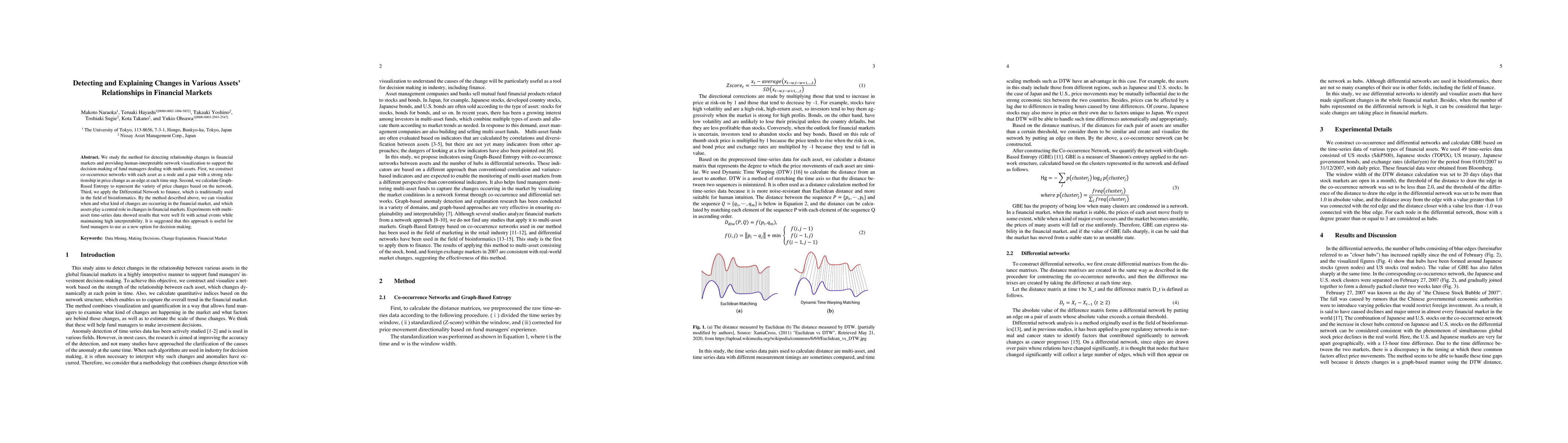 This paper proposes a method to detect and visualize changes in relationships among various assets in financial markets using co-occurrence networks and Differential Network analysis. The approach provides human-interpretable network visualizations that help fund managers make informed decisions, as demonstrated by experiments showing alignment with actual market events.
