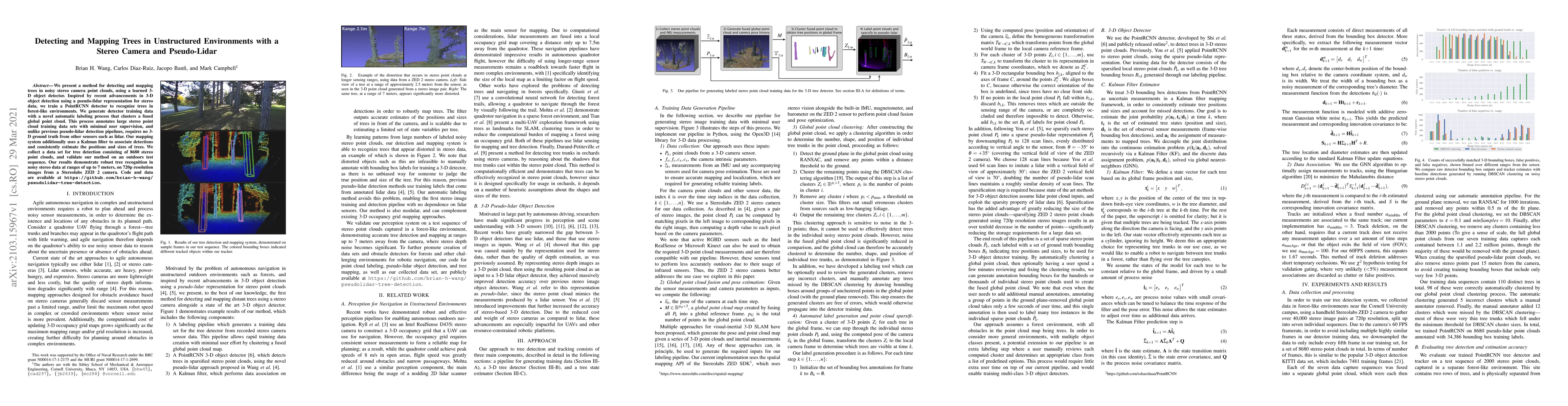 Researchers developed a method to detect and map trees in noisy stereo camera point clouds using a learned 3D object detector, achieving robust tree recognition up to 7 meters away.