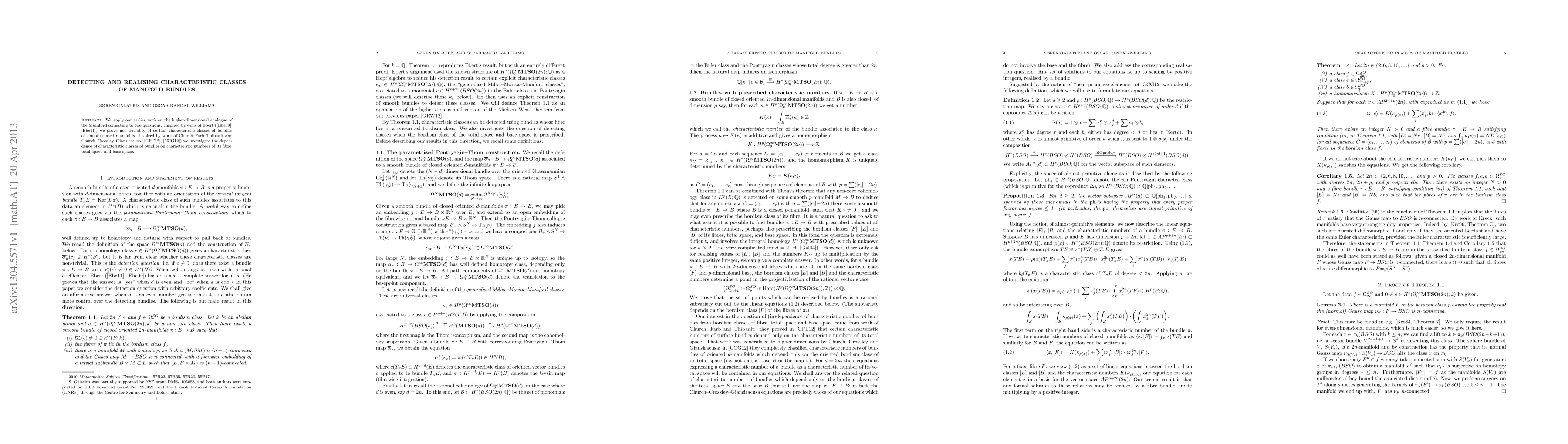This paper proves the non-triviality of specific characteristic classes for bundles of smooth closed manifolds, extending prior work on higher-dimensional analogues of the Mumford conjecture. It also examines how these classes depend on the characteristic numbers of the bundle's fibre, total space, and base space.