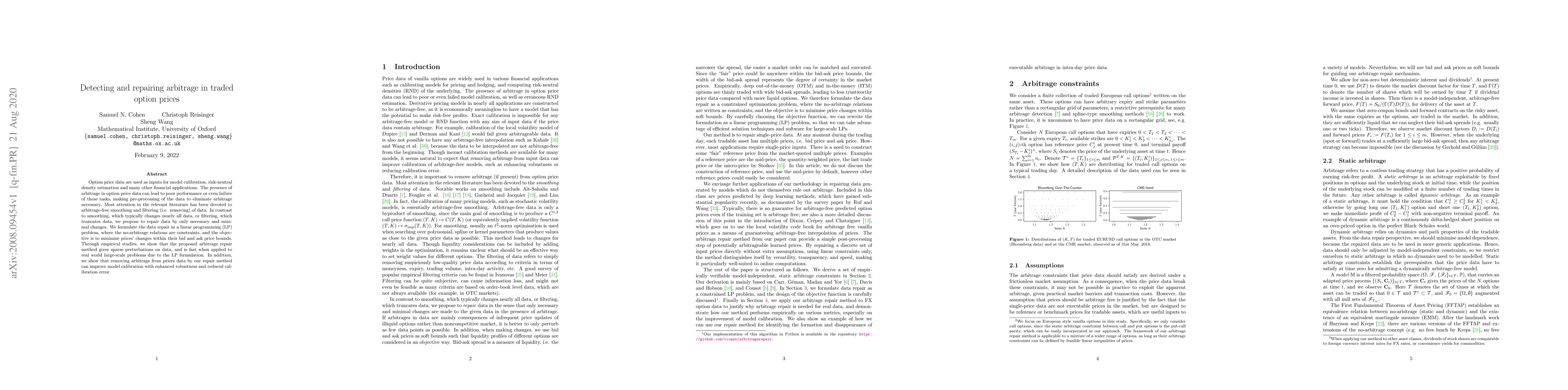 This paper proposes a method to repair arbitrage in traded option prices using linear programming, aiming to make minimal changes to the data while maintaining bid and ask price bounds. The approach improves model calibration and reduces calibration error, demonstrating sparse perturbations and efficiency for large-scale problems.