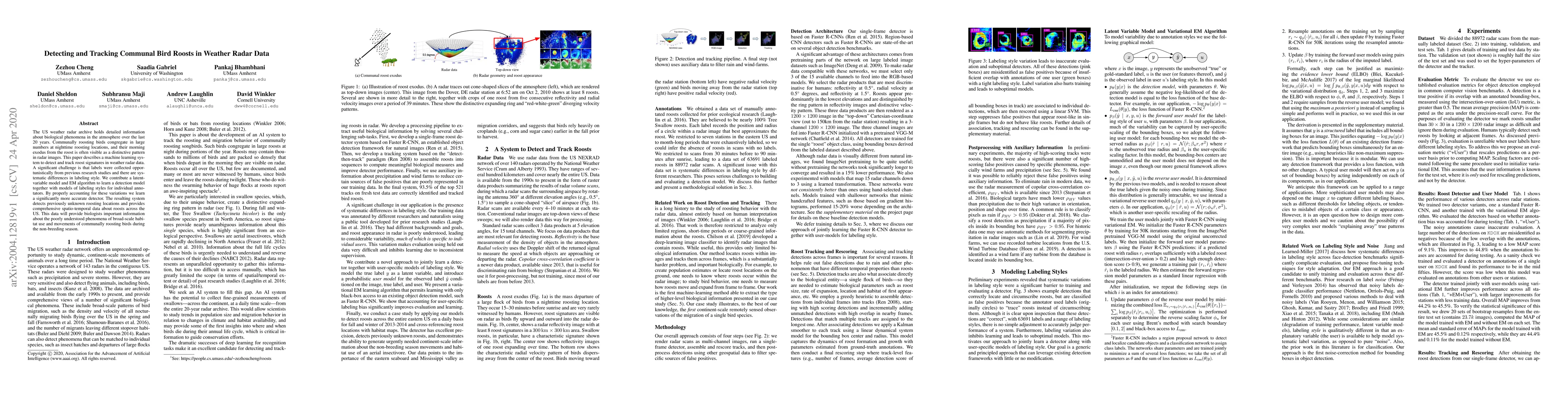 This paper presents a machine learning system to detect and track communal bird roosts using weather radar data, addressing challenges from inconsistent labeling styles. The system employs a latent variable model and EM algorithm to improve detection accuracy, revealing previously unknown roost locations and offering valuable insights into bird habitat use and movements.