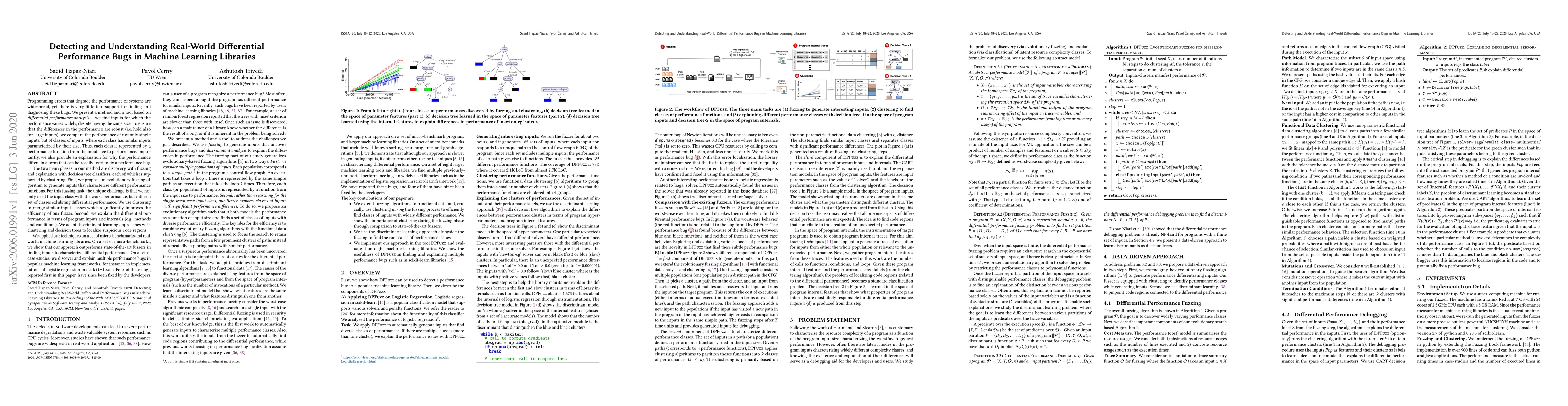 Programming errors that degrade the performance of systems are widespread, yet there is little tool support for analyzing these bugs. We present a method based on differential performance analysis---we find inputs for which the performance varies widely, despite having the same size. To ensure that the differences in the performance are robust (i.e. hold also for large inputs), we compare the performance of not only single inputs, but of classes of inputs, where each class has similar inputs parameterized by their size. Thus, each class is represented by a performance function from the input size to performance. Importantly, we also provide an explanation for why the performance differs in a form that can be readily used to fix a performance bug. The two main phases in our method are discovery with fuzzing and explanation with decision tree classifiers, each of which is supported by clustering. First, we propose an evolutionary fuzzing algorithm to generate inputs. For this fuzzing task, the unique challenge is that we not only need the input class with the worst performance, but rather a set of classes exhibiting differential performance. We use clustering to merge similar input classes which significantly improves the efficiency of our fuzzer. Second, we explain the differential performance in terms of program inputs and internals. We adapt discriminant learning approaches with clustering and decision trees to localize suspicious code regions. We applied our techniques to a set of applications. On a set of micro-benchmarks, we show that our approach outperforms state-of-the-art fuzzers in finding inputs to characterize the differential performance. On a set of case-studies, we discover and explain multiple performance bugs in popular machine learning frameworks. Four of these bugs, reported first in this paper, have since been fixed by the developers.