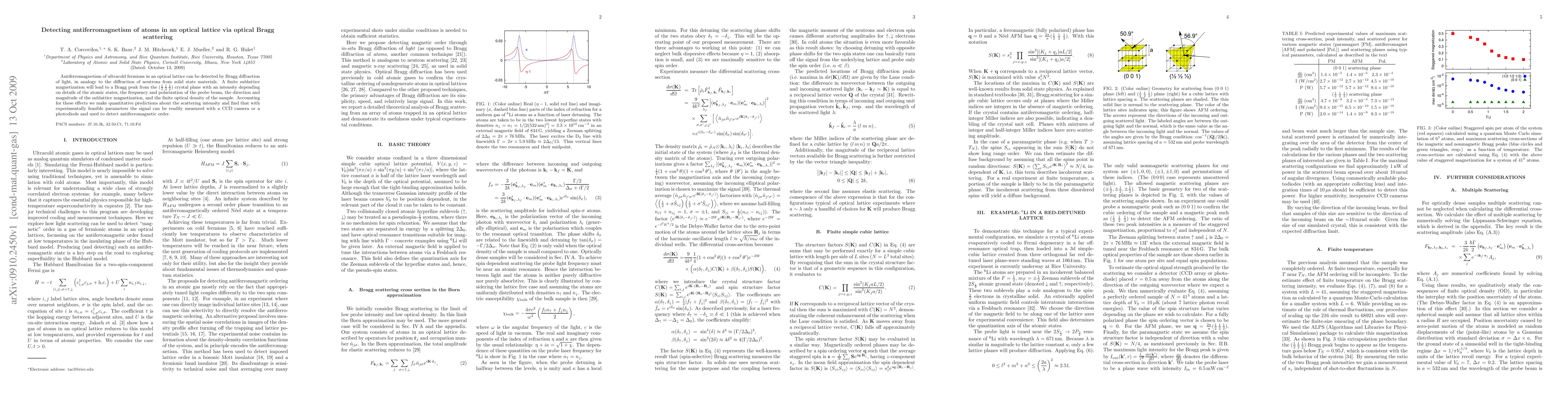 This paper proposes a method to detect antiferromagnetism in ultracold fermions using optical Bragg scattering, predicting that a Bragg peak from the (1/2 1/2 1/2) crystal plane will indicate antiferromagnetic order, with measurable intensity dependent on various experimental parameters. The proposed technique is feasible with current CCD cameras or photodiodes.