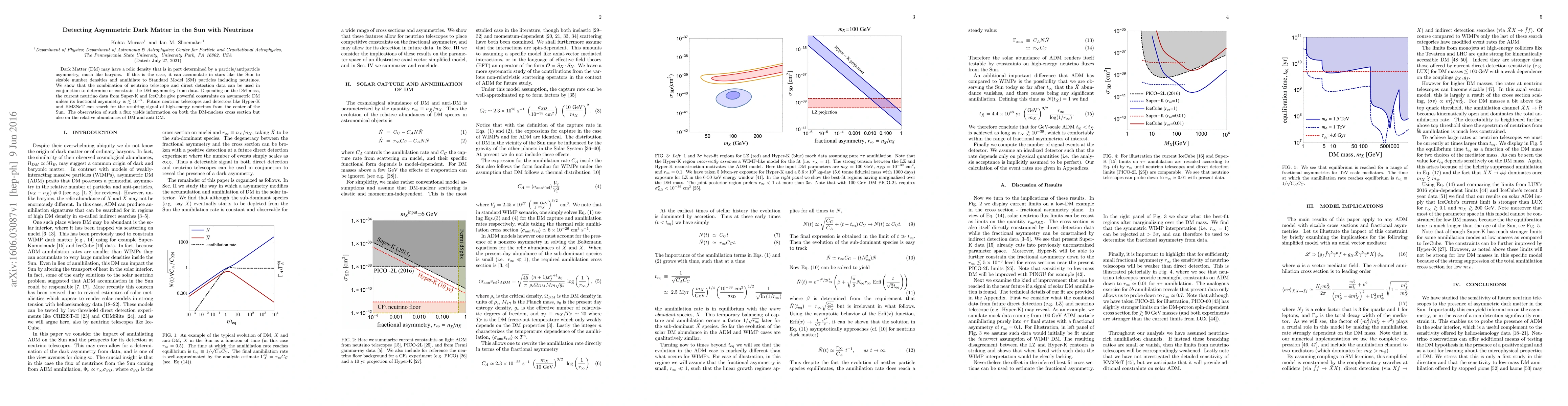 This paper explores the detection of asymmetric dark matter (DM) within the Sun through neutrino signals, suggesting that current neutrino telescopes can constrain the DM asymmetry. Future advanced detectors may observe high-energy neutrinos from the Sun, providing insights into the DM-nucleus interaction cross-section and the relative abundances of dark matter and anti-dark matter.
