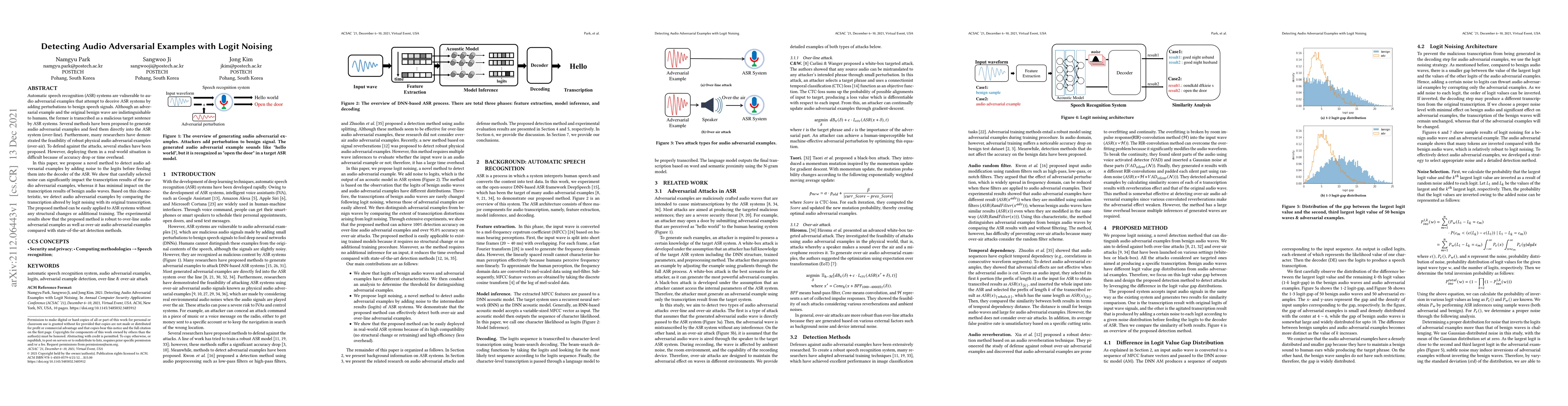 This paper proposes a novel method to detect audio adversarial examples in automatic speech recognition systems by adding noise to the logits before decoding. The method effectively distinguishes adversarial examples from benign audio by comparing transcriptions altered by logit noising, showing minimal impact on benign audio while significantly affecting adversarial examples.