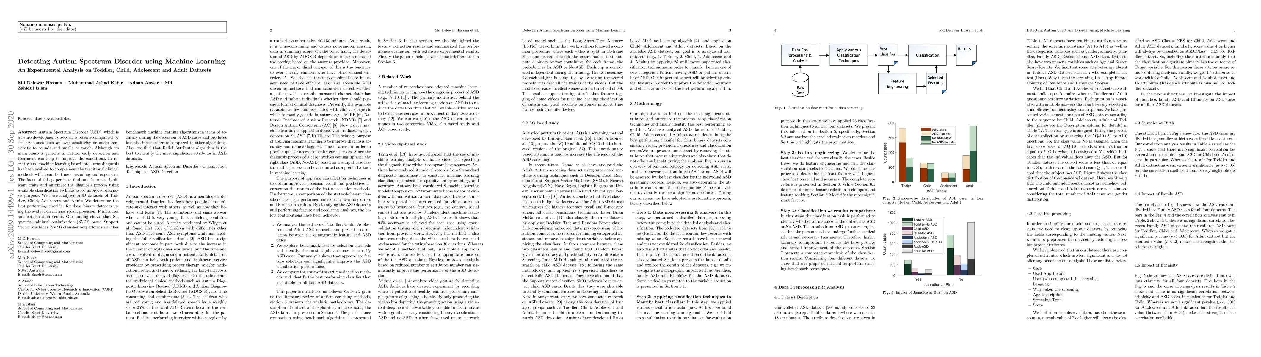 This paper explores the use of machine learning techniques to detect Autism Spectrum Disorder (ASD) by analyzing datasets from various age groups. The study finds that Sequential Minimal Optimization (SMO) based Support Vector Machines (SVM) classifiers provide the most accurate diagnosis compared to other algorithms, while the Relief Attributes algorithm effectively identifies the most significant traits for ASD detection.