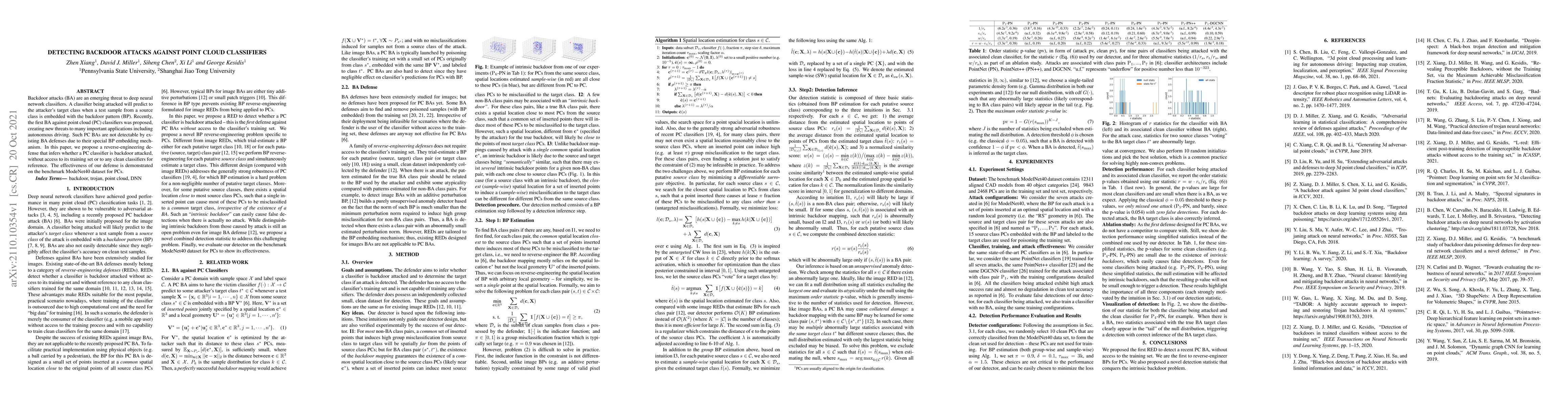 The proposed RED (Revealing Endogenous Data) method detects backdoors in 3D point cloud classifiers without access to the training set.